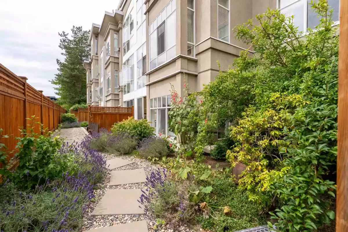 Rarely available ground-level garden suite with sunny south-facing patio! This immaculate 2-bedroom, 2-bathroom home offers exceptional privacy and comfort in a quiet, well-maintained complex. The fully fenced, south-facing patio is ideal for relaxing or entertaining, enjoying all-day sun with no units directly behind-just peaceful, open surroundings. Inside, the efficient layout features separated bedrooms and bathrooms, perfect for shared living or guests. Recent updates include a newer fridge, stove, fresh paint, updated bath fixtures, and a cozy gas fireplace with modern tile and mantle. Quality laminate flooring and the spacious primary bedroom offers a large walk-in closet and full ensuite. Situated on a quiet dead-end street. Amazing location close to everything! Open House Sat 2-4