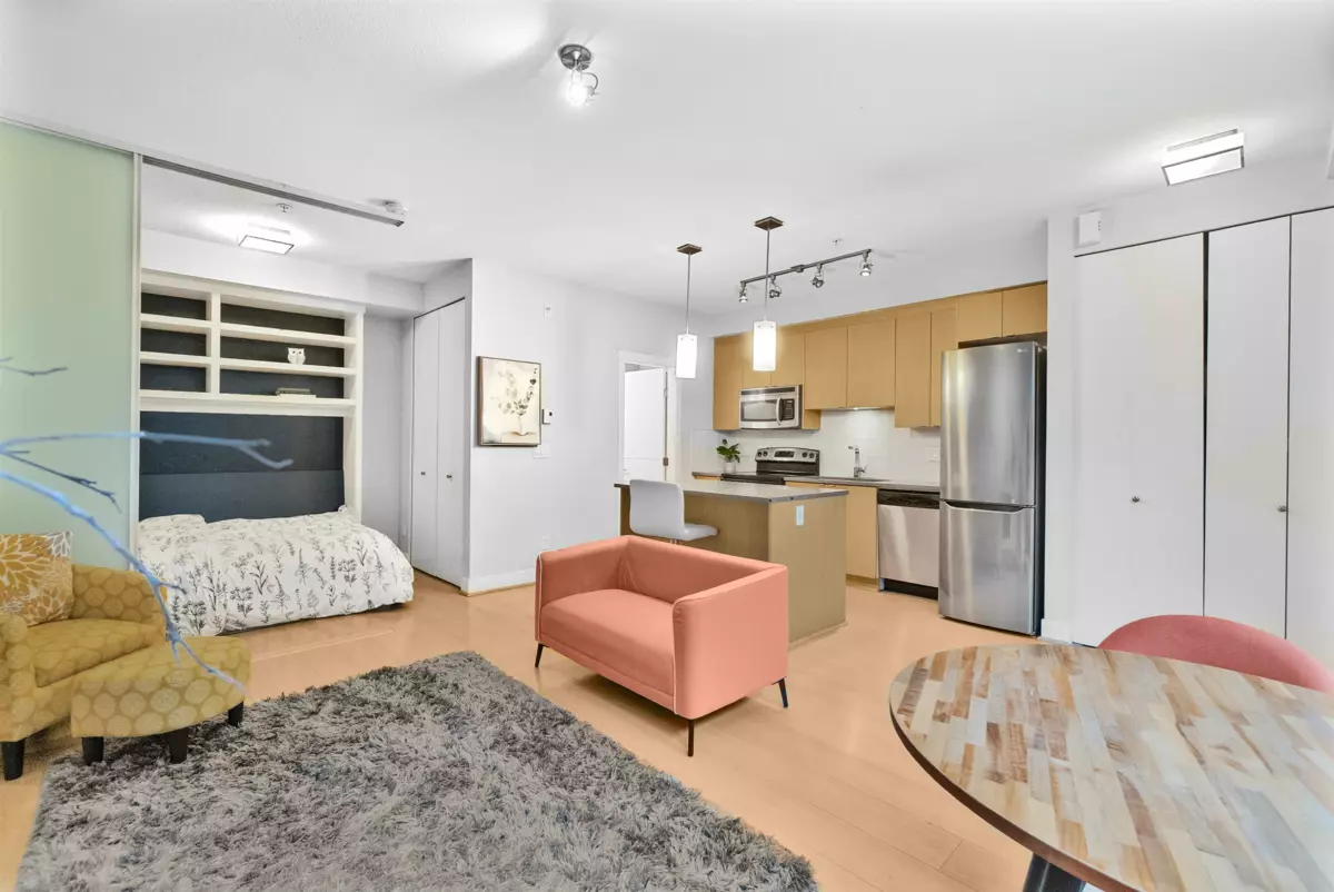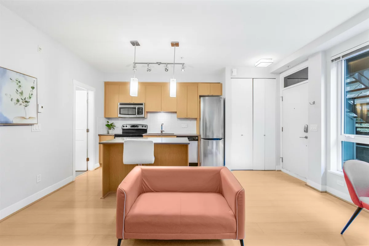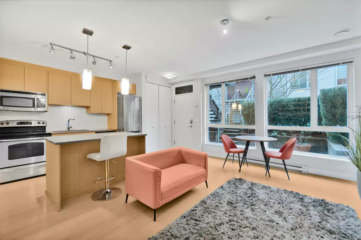 Live in the heart of the city while enjoying the tranquility of Mosquito Creek and lush greenery. This 2012-built junior one-bedroom, one-level townhome features a smart, flexible layout with a Murphy bed, built-in desk, and sliding door, allowing the bedroom to adapt easily for work, sleep, or entertaining. Zero wasted space and one of Canada’s highest GREEN certifications offer efficient, sustainable living. Enjoy an open gourmet kitchen, chic bathroom with auto light sensor, private entrance, and approx. 200 SF patio. Steps to trails, ski hills, marina, shops, and transit. Includes 1 secure parking, 1 storage, gym, bike room, and low $219.48 maintenance fee. Pets and rentals allowed. Priced to sell—call today to view! OPEN HOUSE SATURDAY 24TH