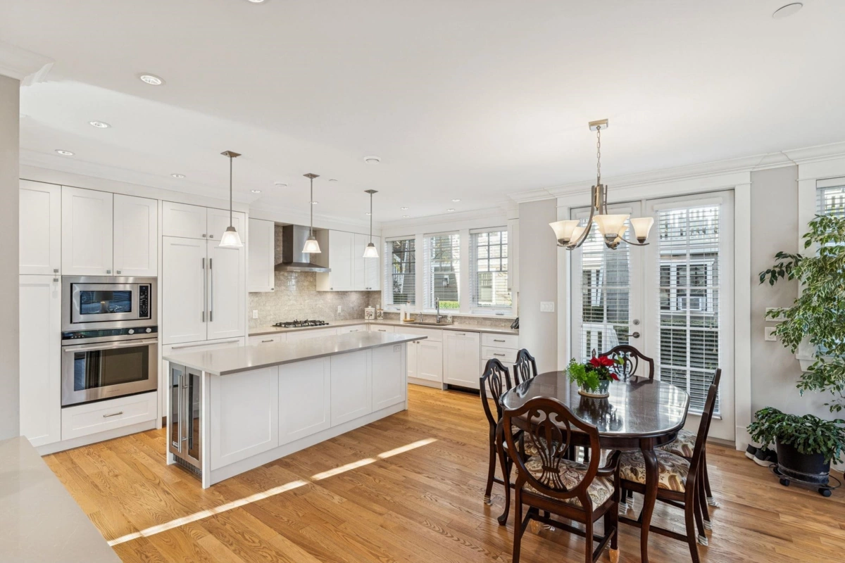 Enjoy all the benefits of a detached home with the convenience of townhouse living on this extraordinary 4-unit strata in prime Ambleside. The development includes the original Rush House heritage home with a separate strata basement suite & two detached homes. I am pleased to present this Craftsman-style residence offering single-family living without garden maintenance. The 3-level home shows beautifully with 4 bedrooms, 5 bathrooms, & a spacious kitchen, dining, & living area on the main. Developed by respected architect Michael Geller with Trasolini Construction. A tasteful answer to densification that blends into this desirable neighbourhood. Bonus: EV charging in the garage & surge protection on the electrical panel. Close to great schools, shopping, and transportation. A perfect 10!