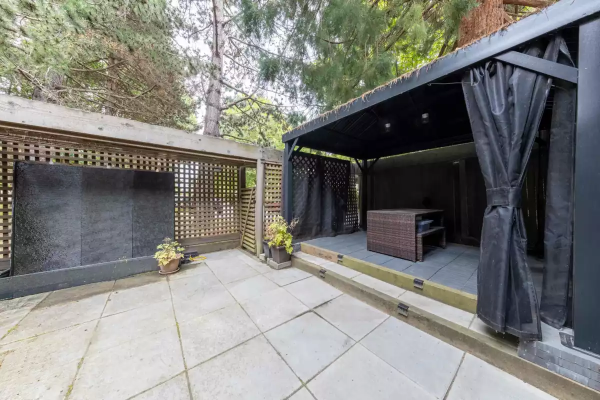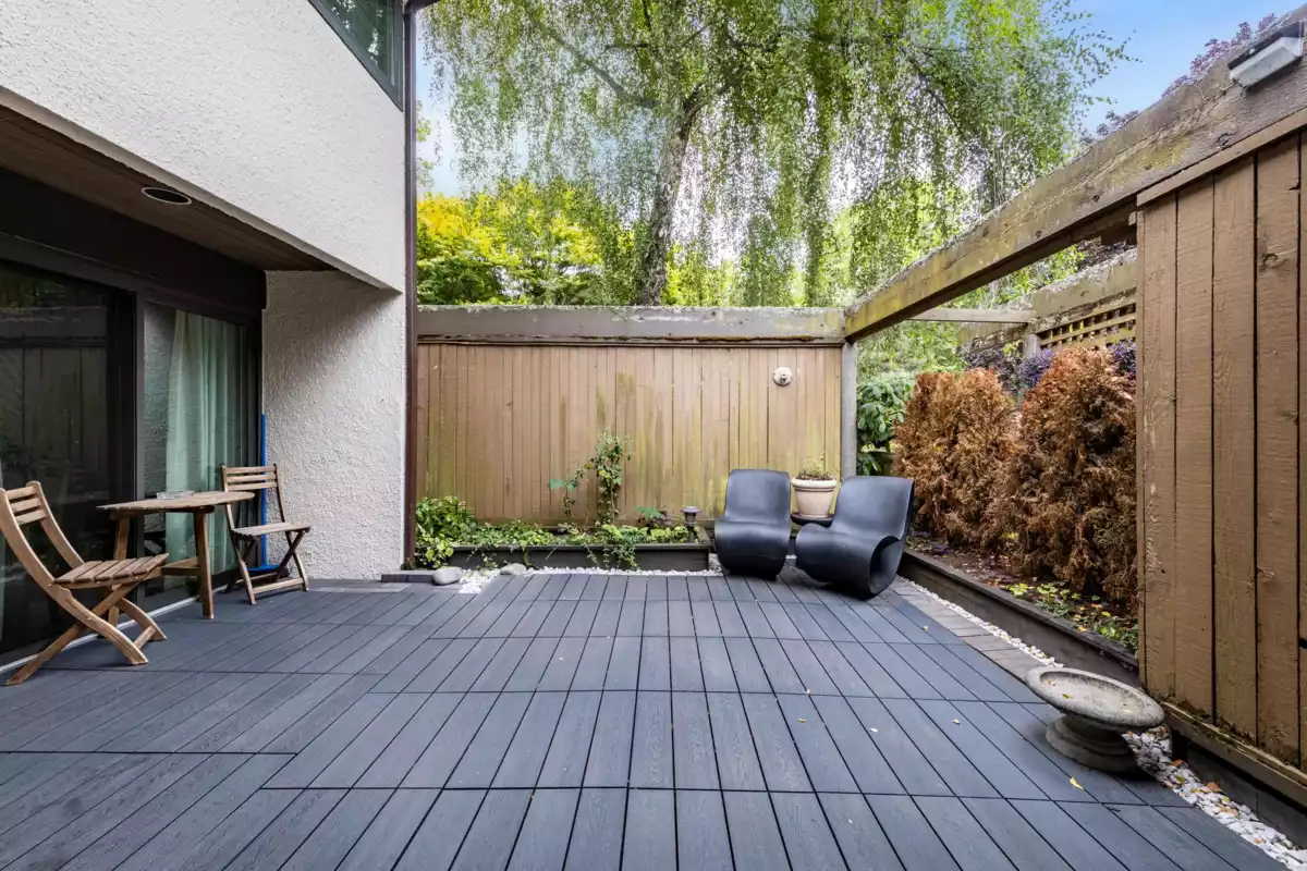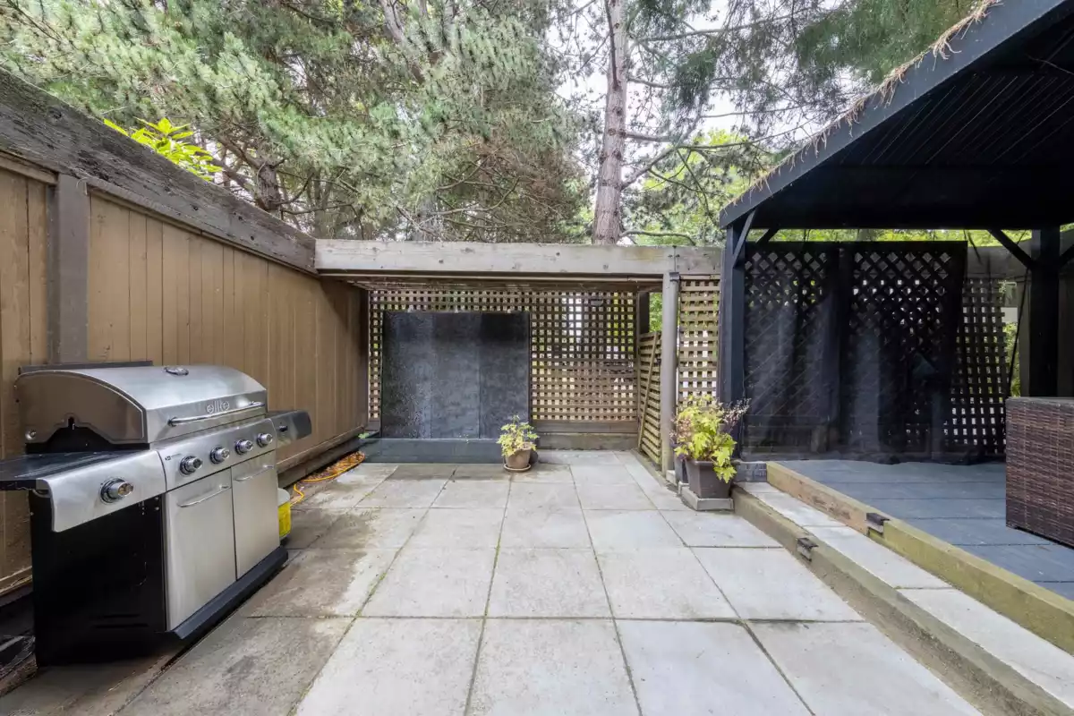 Perfect Family Home in Steveston! Renovated 3-bed+Den/3-bath CORNER-unit, 2-level townhome overlooking the park in highly desirable oceanfront Mariners Village. Private corner surrounded by greenery with a bright living area. Extensively updated with GAS range & upgraded high-end appliances, modernized kitchen, and all bathrooms fully renovated. The reconfigured main floor layout creates a more open and airy living space. Enjoy private front & back patios, including a beautifully redesigned backyard with a gazebo and custom lighted water feature. Amenities: indoor pool & hot tub, clubhouse, lush green space, onsite manager. Steps to dyke trails, Steveston Village, and schools (Lord Byng & McMath) . Private carport at your door + extra parking on-site. This is Steveston living at its best!
