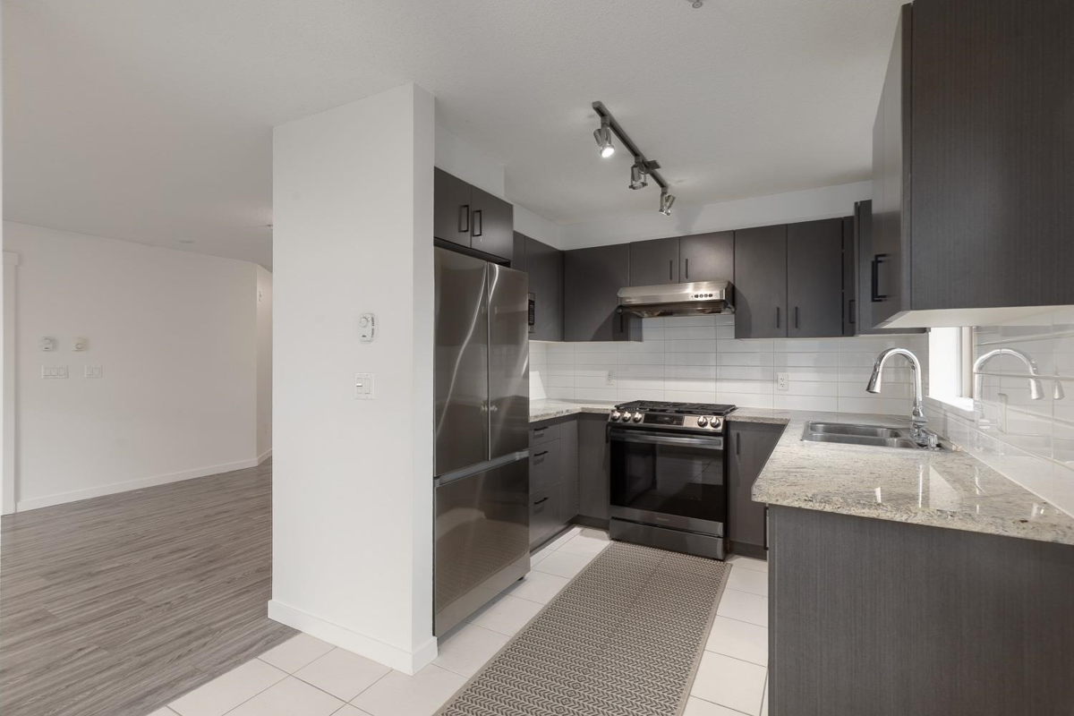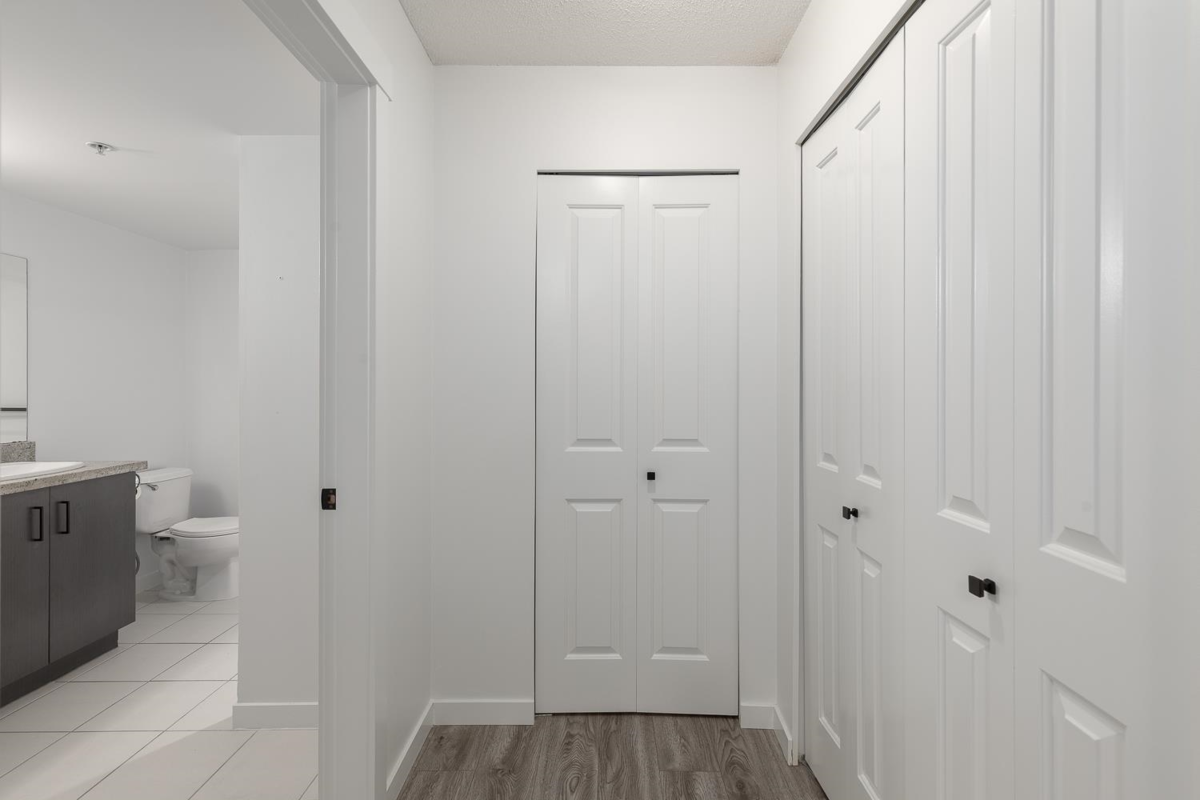 Welcome to Meridian Gate by Polygon! This well maintained corner unit offers 1,121 sqft of living space with two spacious bedrooms, two bathrooms plus a large private patio. Enjoy quality finishes throughout- including granite countertops, stainless steel appliances, a gas stove and laminate flooring. A rare bonus, it comes with two parking stalls and two lockers. Residents also have access to a 7,000 sq ft clubhouse with a pool, hot tub, multimedia lounge, gym, and guest suite. Centrally located and just a short walk to banks, Walmart, restaurants, schools, parks, and transit. A must see!