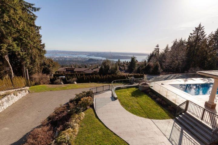 This extremely elegant luxury home with Panoramic Ocean view in British Property. This mansion perfectly sited on 26,237 SF level lot, 200' wide ocean & city view. Excellent layout, spacious hallways & bedrooms. Top workmanship, gourmet kitchen, over sized wok kitchen, exquisite moldings, walnut & marble slab flooring, granite counters. Highlights including 7 bedrooms, 10 baths, 42' deep foyer, formal LR & DR, Den, stunning KITCHEN merging to nook & huge family-room opening to covered porch & infinity outdoor pool perfect for entertainment. Fabulous Master w/sittting area, grand ensuite & private decks. Basement is entertainer's delight billiard recreation room, home theatre, wet bar & wine room, 4-car garage. Close to Chartwell School/Collingwood School/Mulgrave School.
