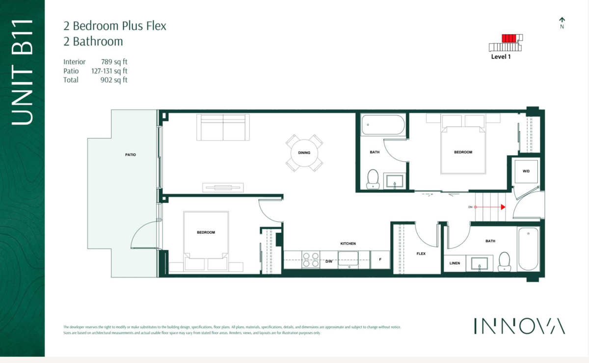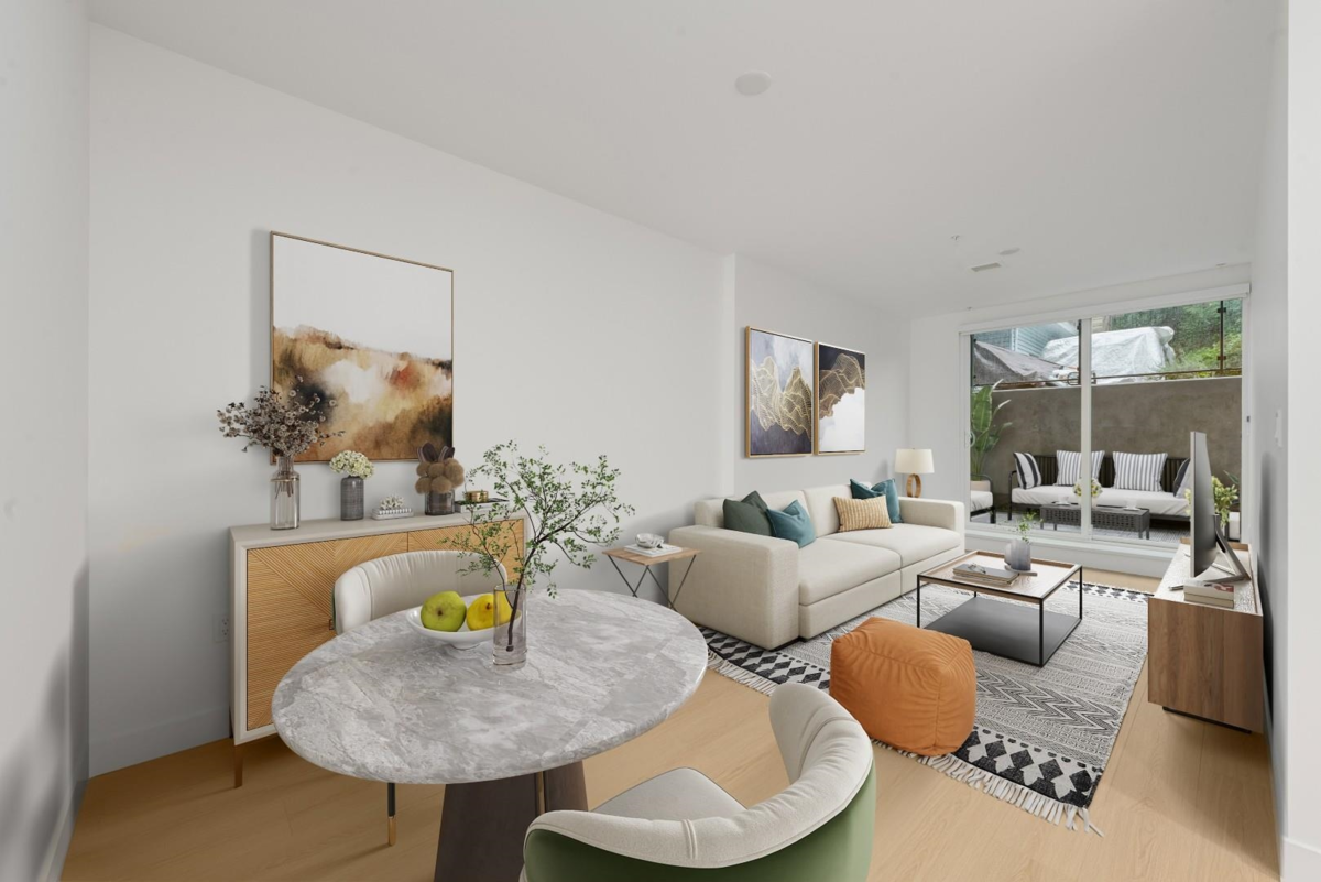 Discover INNOVA — a concrete-built collection of 1, 2, and 3-bedroom homes and live/work townhomes in the heart of Lower Lonsdale. Bright and modern ground-level home offering unbeatable value in a newly completed concrete building. This move-in-ready suite features open-concept living, full-size kitchen high ceilings, and a larger 135 sqft patio ready for your creative touch. Future retail homes to both Lee’s Donuts and Delany’s Coffee, INNOVA brings true convenience home. Enjoy the peace of concrete construction, modern interiors, and everyday essentials right at your doorstep — including an on-site daycare and curated retail. OPEN every Saturday from 1-4pm; Sales Office 102a 422 E 3rd Street.