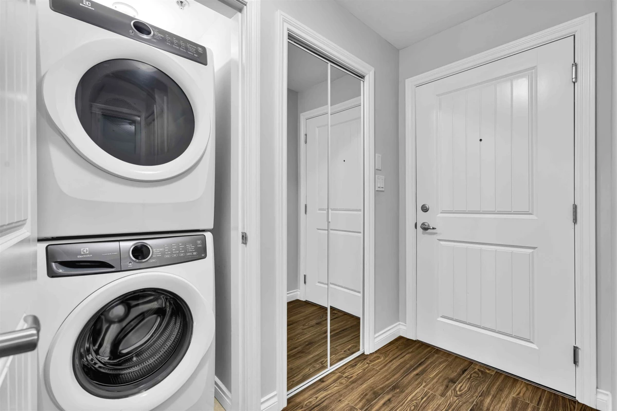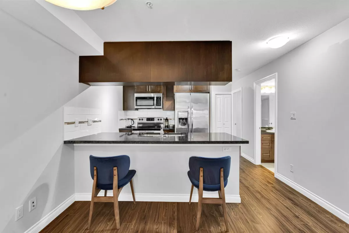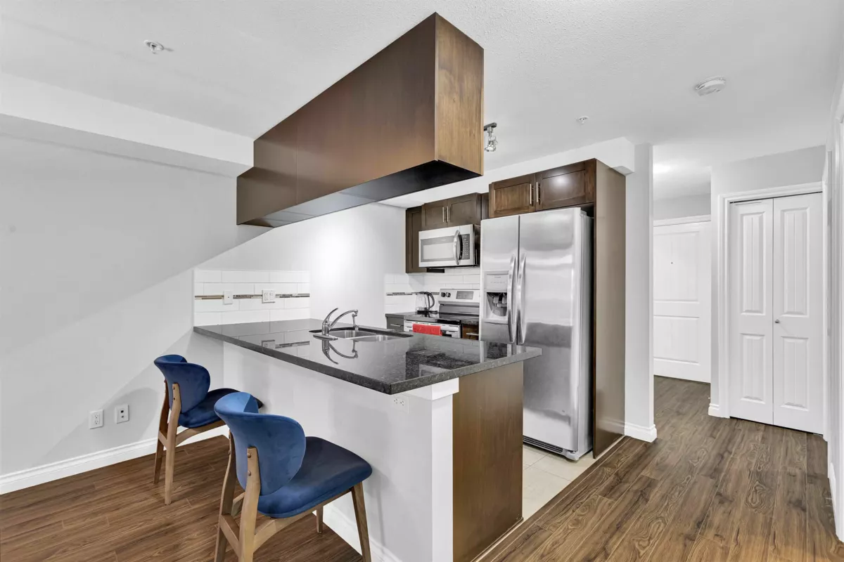 Welcome to Paddington Station! This charming 2 bed, 1 bath ground floor unit offers 720 sqft of well-designed living space. Highlights include gourmet granite counters, sleek stainless steel appliances, and convenient in-suite storage. The spacious primary bedroom features air conditioning, dual closets, and a private ensuite. Enjoy a cozy patio, perfect for relaxing or entertaining. The complex offers amenities like a guest suite, library, and is pet & rental-friendly (2 dogs/cats). Includes 2 underground parking stalls and ample visitor parking. Prime location—steps to shops, dining, parks, schools, transit, and the upcoming SkyTrain! Don't miss excellent opportunity for investors, first-time buyers, or downsizers looking for a move-in ready home in this high-demand area!