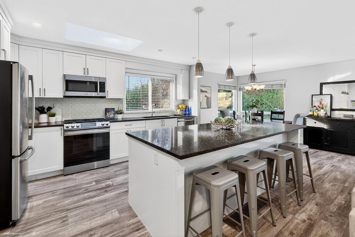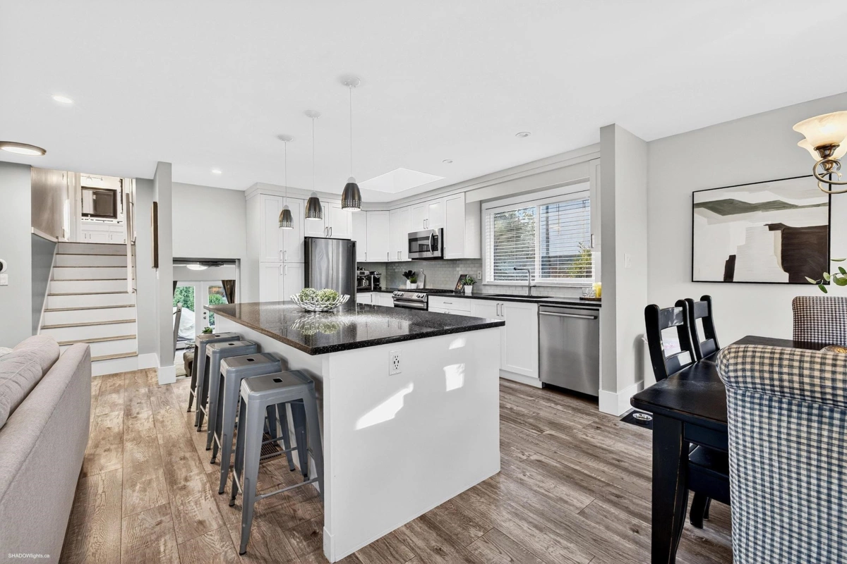 Beautiful 3-bedroom, 3-bathroom split-level home with a den, ideal for first-time buyers or growing families. The open-concept main living area features an updated kitchen and living room, while a separate recreation room provides the perfect private space for kids or entertaining. Updates include, New Roof (2025), Hot Water Tank (2024) and new French doors that open to a backyard oasis, ideal for summer BBQs and outdoor movie nights. Enjoy exceptional walkability to shops, schools, transit, and the nearby watershed. Located in the highly desirable Sunshine Hills neighbourhood within the sought-after Seaquam Secondary catchment.