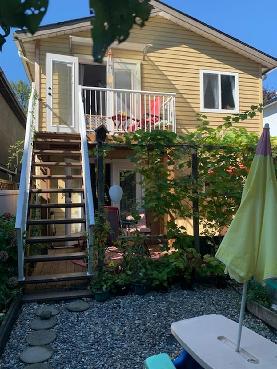 This 5 bedroom, 3 bathroom, almost 2000 square foot, detached duplex, share NO common walls and NO Strata Fees! Home features: fenced 3 car driveway and boasts significant updating through the years including: kitchen, bathrooms, flooring, paint, windows, lighting, and much more! Gardening lovers alert: the backyard has been transformed into a mini urban paradise! Upper level: 3 beds, 2 baths, wood burning fireplace, 2 balconies, with direct access to the garden. Ground level has 2 beds, 1 bath - Licensed Airbnb, great mortgage helper or perfect place for aging parents. Lots of natural light, gas fireplace, separate French doors entrance, 10x20 private deck. FANTASTIC neighbourhood and close to shopping, park, transit, schools and more!