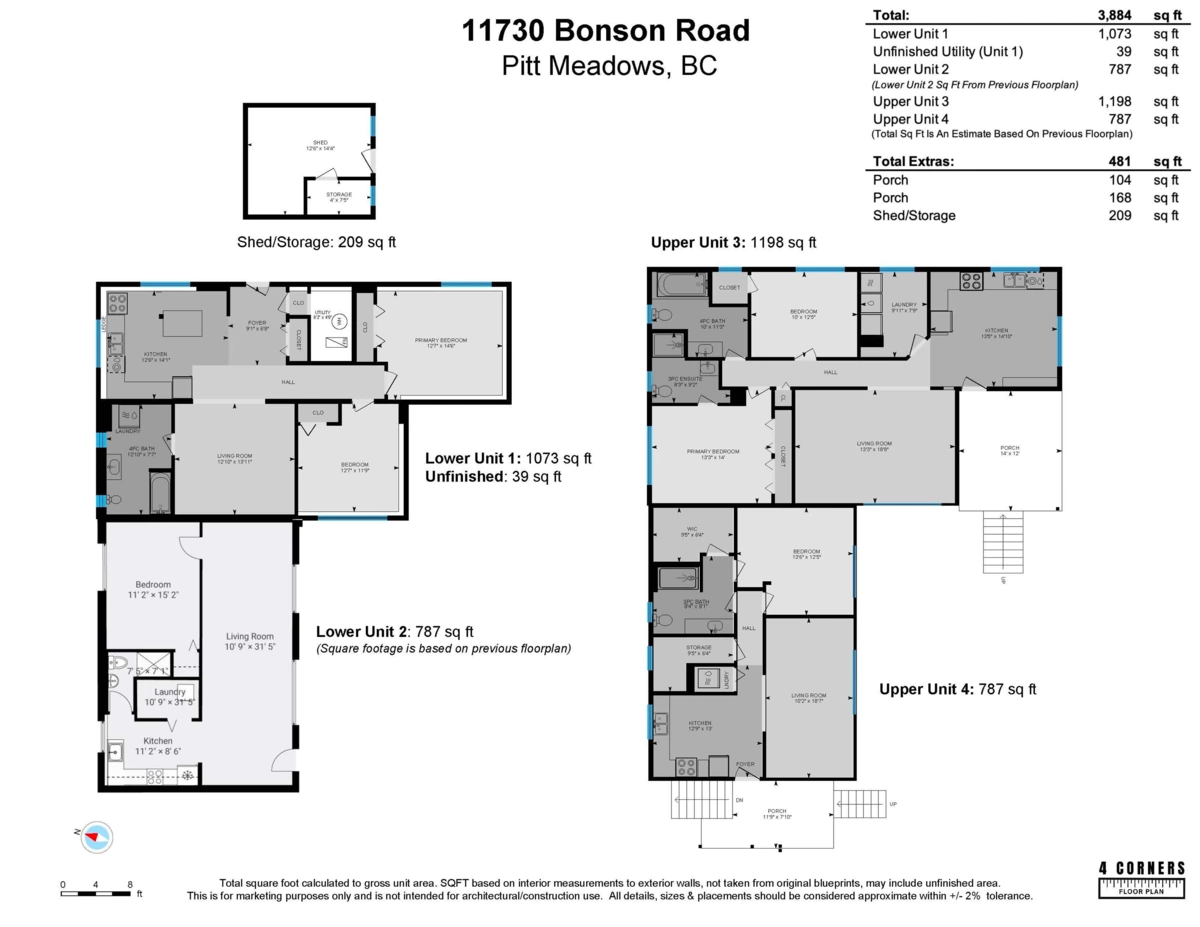 Exceptional opportunity for multigenerational living or an owner-occupier seeking strong rental income. This updated duplex offers rare flexibility with two spacious 2-bedroom suites and two 1-bedroom suites—ideal for extended family, aging parents, adult children, or tenants. Each unit has a private entry, updated finishes, and access to ample parking. Well maintained inside and out. Located within family friendly Pitt Meadows, within walking distance to West Coast Express, transit, parks, schools, and shopping. Whether you live in one unit and rent out the rest or fully invest, this is a value-packed opportunity you can’t afford to miss! Call your Realtor today for a private viewing. Open House: Feb 7 12:00-2:00