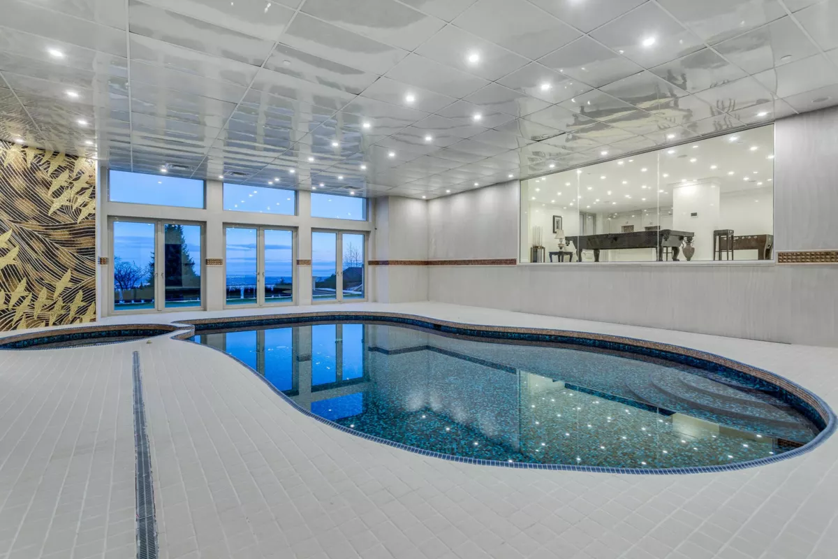 Indulge in unparalleled luxury at this 19,130 SF gated estate, offering over 10,000 SF of opulent living space. Enjoy breathtaking ocean, city, and bridge views, complemented by marble floors, state-of-the-art air conditioning, a private theater, an elevator, and both indoor and outdoor pools with a hot tub. The gourmet kitchen, paired with a separate wok kitchen, is perfect for grand entertaining. A triple-car garage and ample guest parking ensure convenience. Each bedroom features a lavish ensuite, while six expansive decks enhance indoor-outdoor living. Offered fully furnished, this estate showcases superior design, custom lighting, and immaculate grounds.