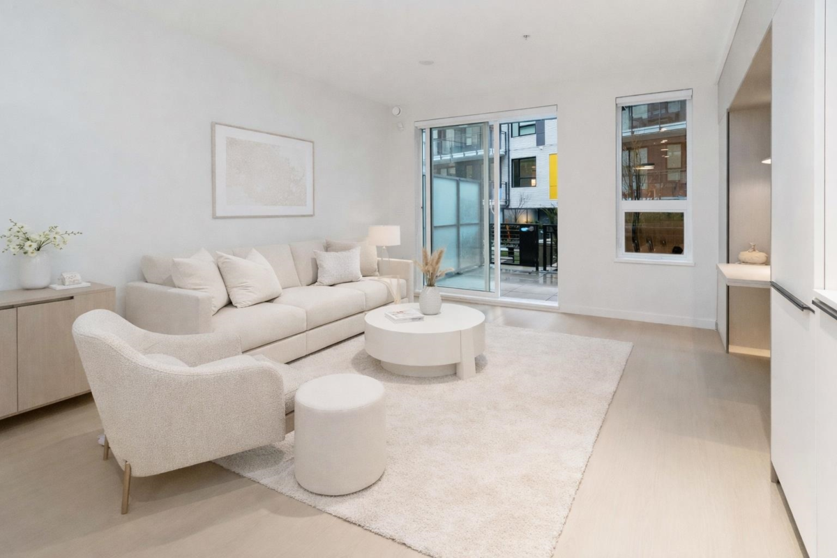 Welcome to Hue by Marcon! This ground floor, junior 1 bedroom + 1 bath with LARGE patio space facing inner courtyard is the perfect first time home buyers spot or investment property! Fantastic location allowing you to skip the traffic of busy Port Moody this property is located a quick exit down Barnet to get downtown or up snake hill to access the HWY! Gorgeous finishings throughout with quiet side of building exposure. Rooftop patio offering sweeping mountain and inlet views, community garden plots, a fully equipped fitness centre, co-working lounge, children’s play area, dog wash station, EV-ready parking, and more, all set in the heart of Port Moody’s vibrant community. This home is selling WAY BELOW THE DEVELOPERS PRICE! Book your private viewing today!