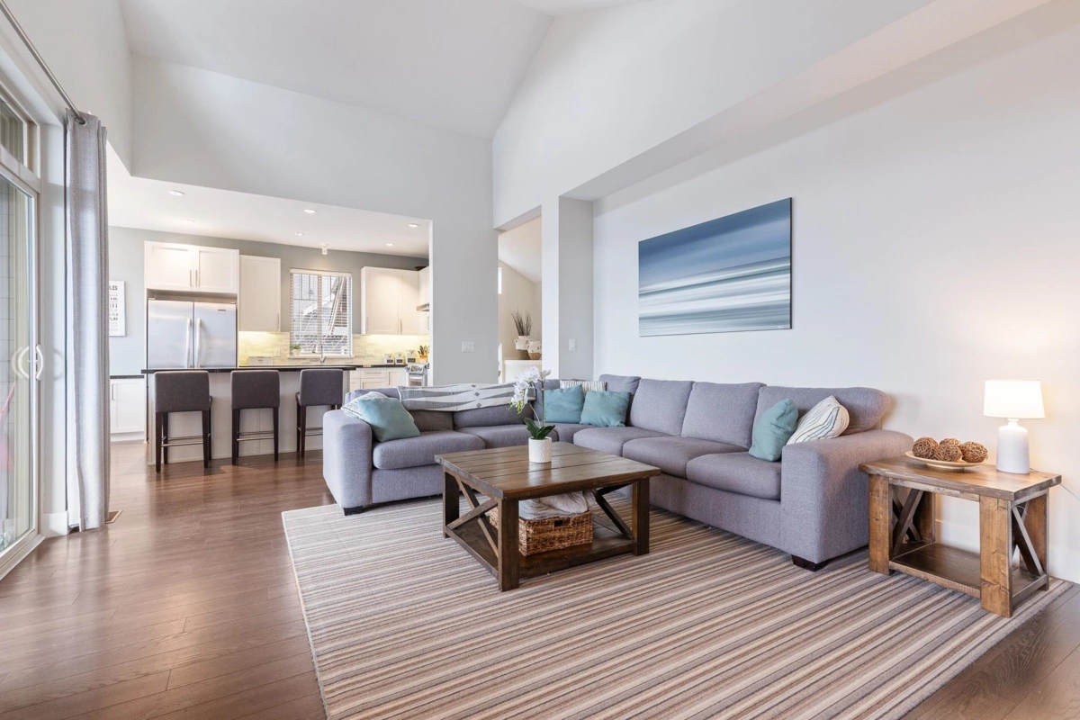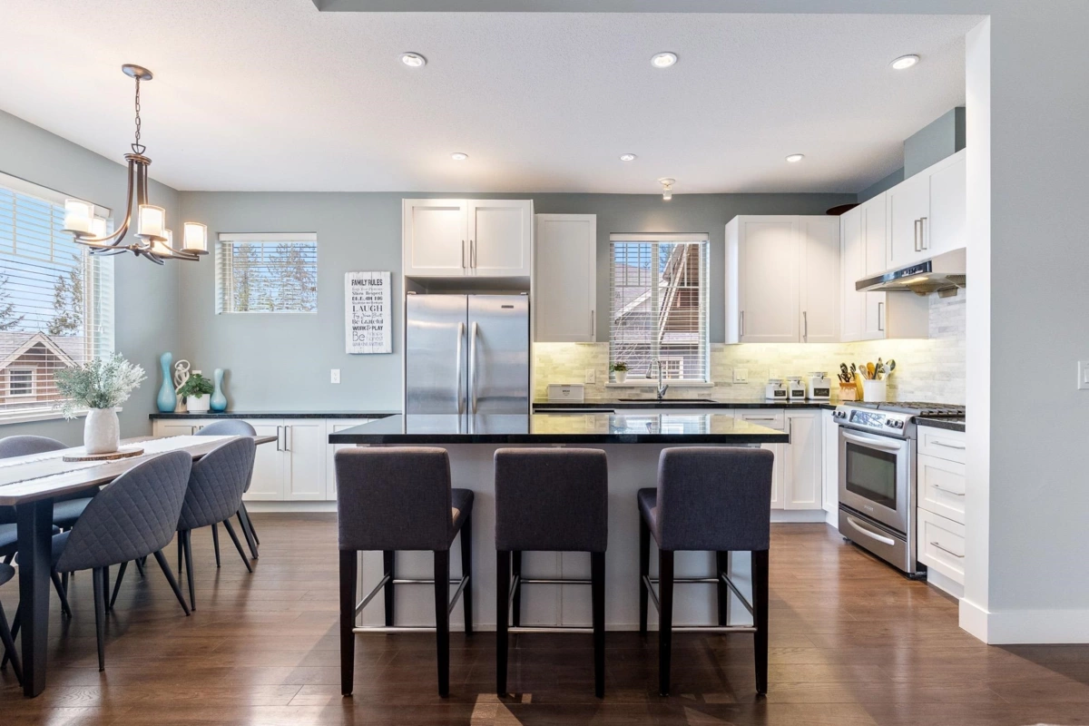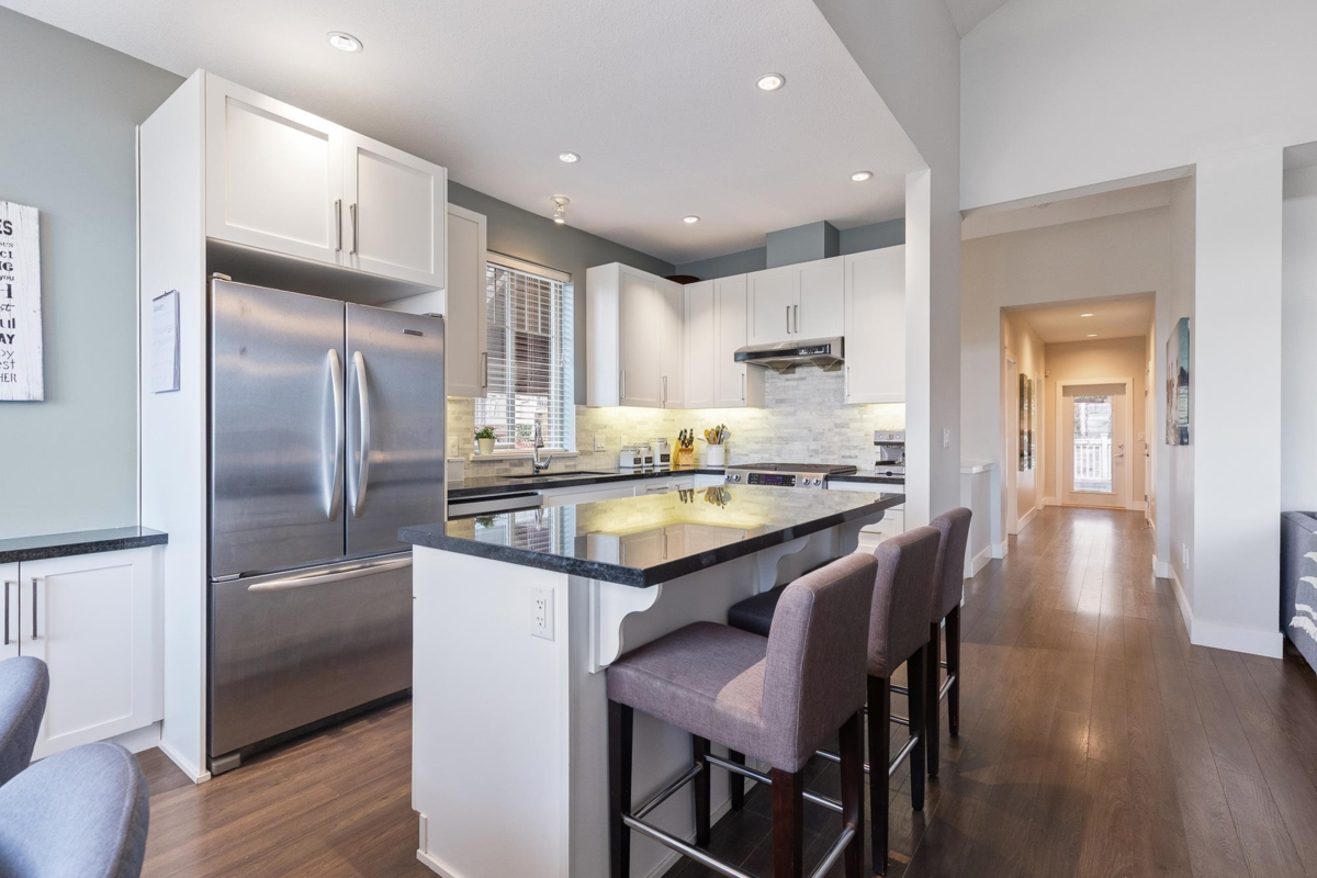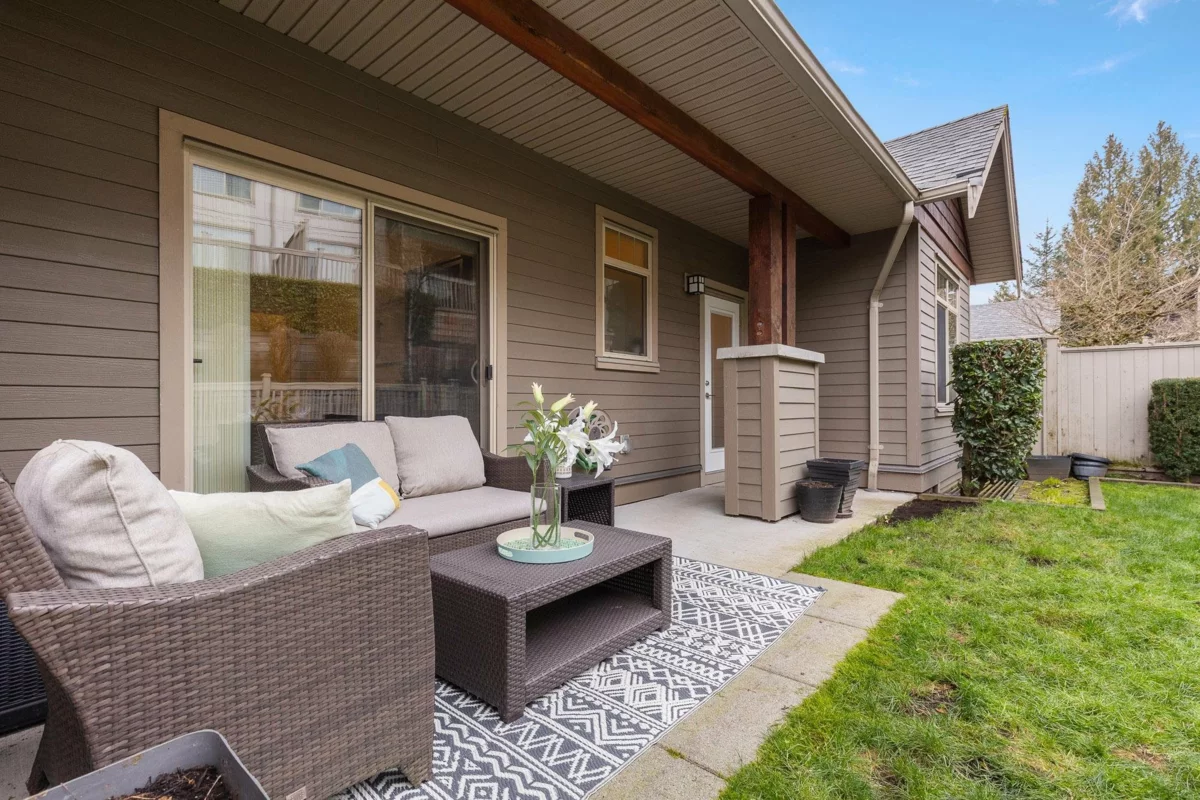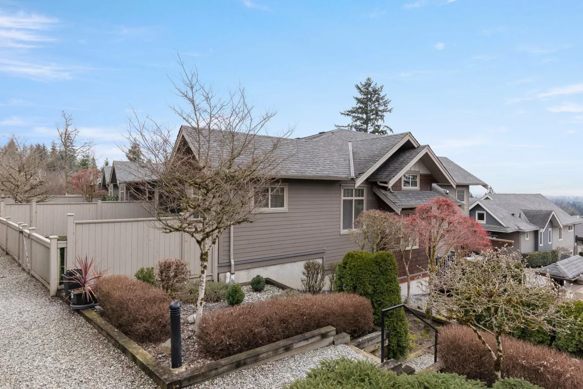Welcome to Secret Ridge on beautiful Burke Mountain! This 4-bed, 3-bath, 2,299 sq ft townhome offers rare rancher-style living with the primary bedroom and laundry on the main floor—perfect for downsizers. Enjoy air conditioning, parking for 4 cars, upgraded granite countertops throughout, a bright open-concept main floor, and a lovely south-facing outlook that fills the space with natural light. Upstairs you'll find three spacious bedrooms, while the fully renovated basement features over-height ceilings, a fantastic rec room, full bathroom, and an additional bedroom—ideal for guests or extended family. Located in a coveted community known for its tranquility and natural beauty, this home combines comfort, style, and function in one thoughtfully designed package.