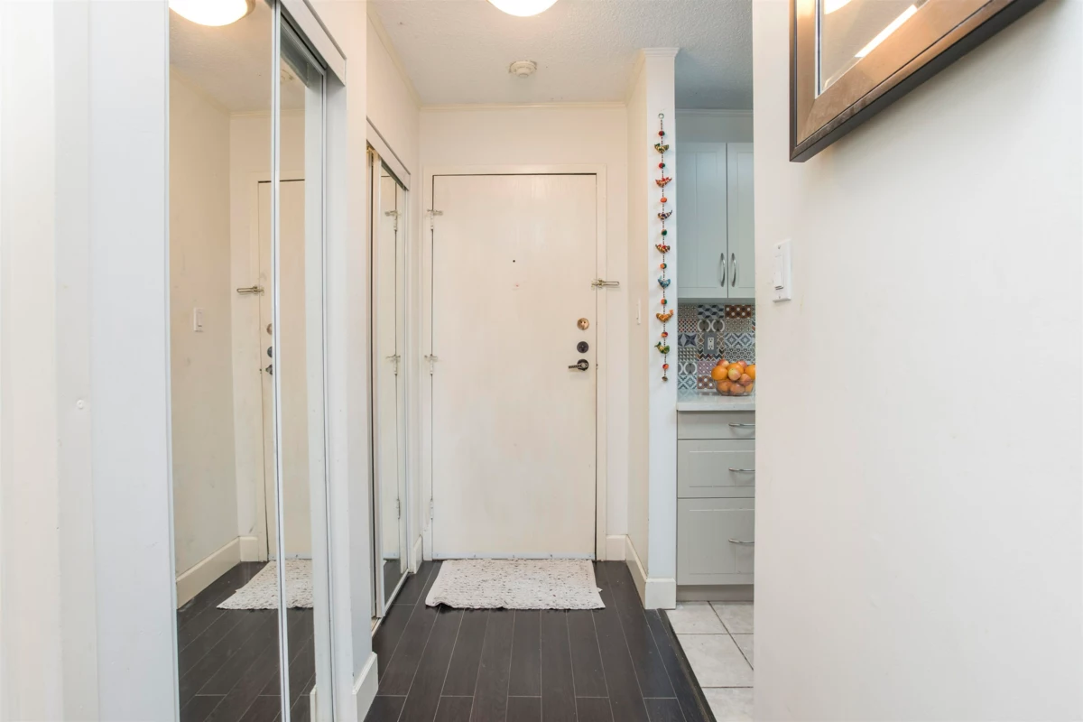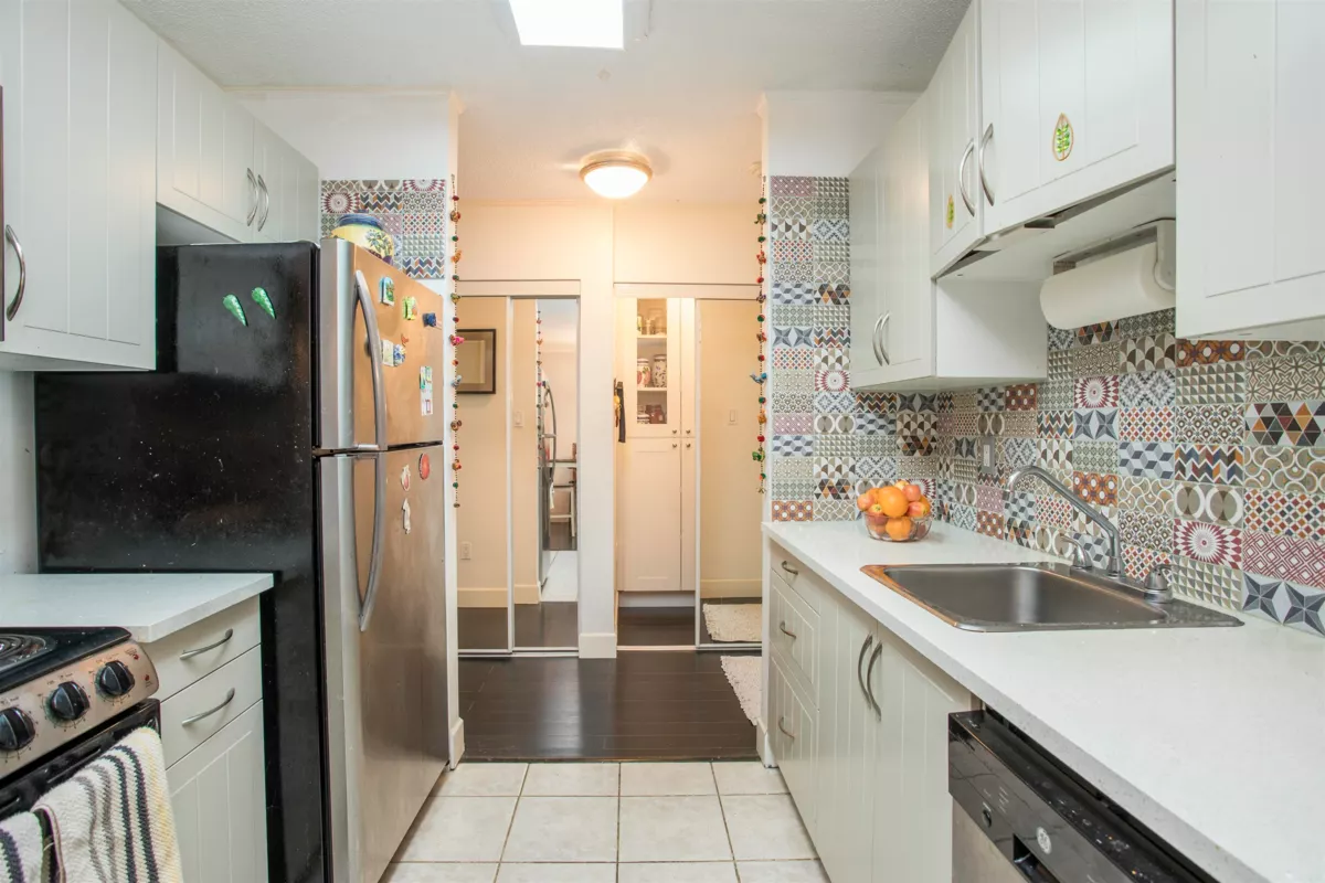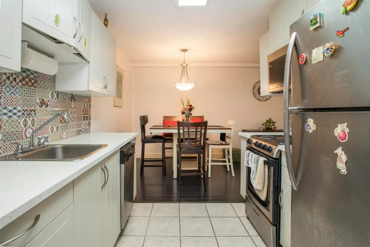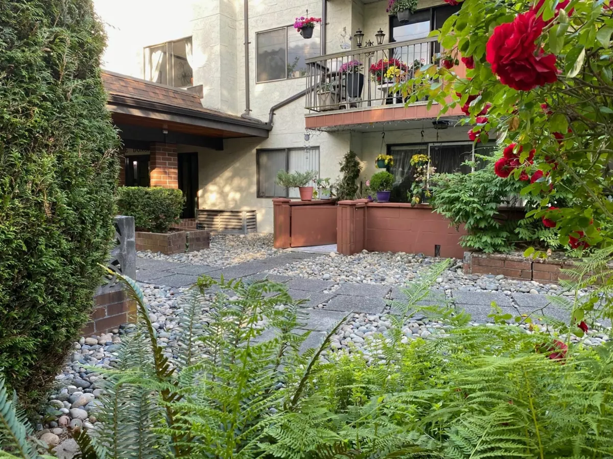 Beautifully updated 1 bed, 1 bath ground floor patio unit in the heart of Uptown New Westminster. Features a fully renovated kitchen with quartz counters, new cabinetry, all 4 new stainless-steel appliances, complete with a renovated full built-in pantry. Large primary bedroom features cheater ensuite with upgraded fixtures. Spacious living space with dedicated dining leads out with sliding glass doors to a serene private patio overlooking the rose garden. Enjoy the rare convenience of dual entry. Great location, close to transit, Royal City Centre, parks, and schools.