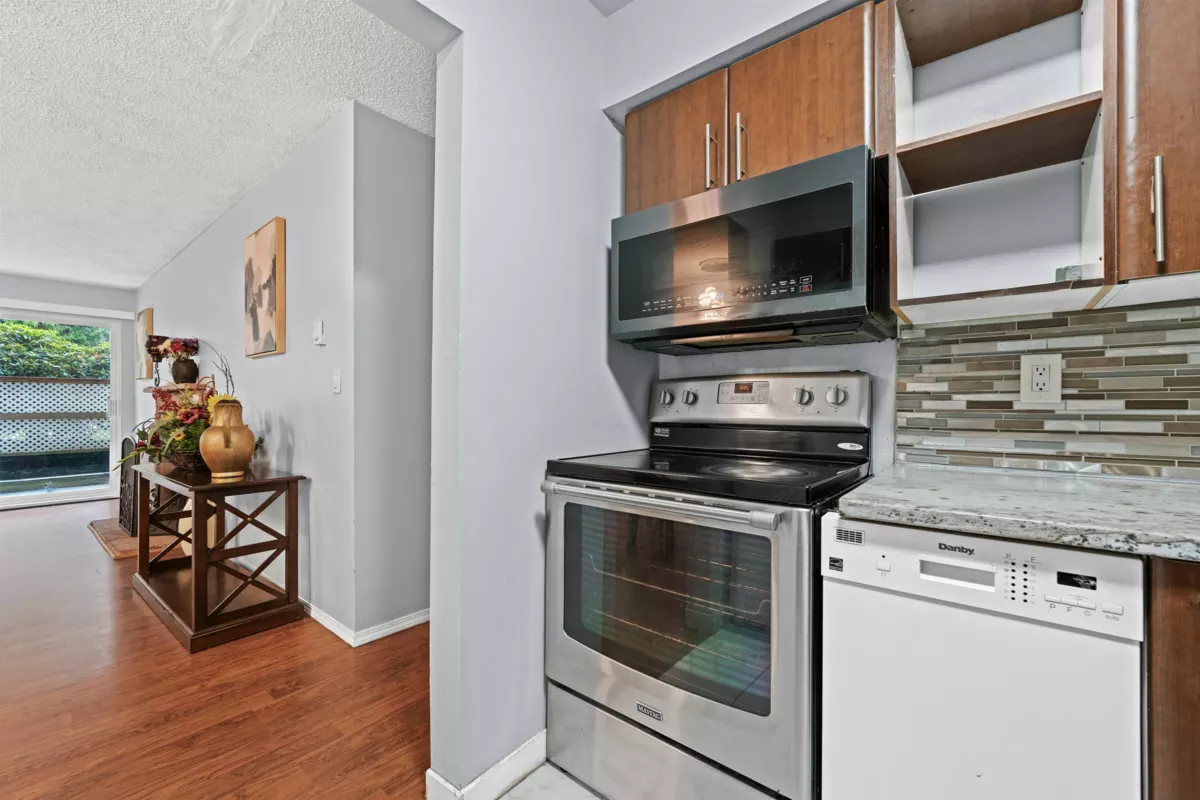Investors & buyers alert! This inviting 2 bed/1 bath condo in the Burquitlam neighbourhood of West Coquitlam is positioned in a rapidly transforming area poised for future redevelopment. This home offers a townhome feel with its own private entrance & convenient ground level walk out. Enjoy 2 well-sized bedrooms, a den, in-suite laundry, a functional kitchen, & the comfort of a well-maintained building. Its unbeatable location provides immediate access to SkyTrain, Lougheed Town Centre, shopping, dining, top-rated schools, making it ideal for both everyday living & strong rental potential. Perfect for first-time buyers, downsizers & savvy investors alike, this property represents a standout investment opportunity with exceptional future value. OPEN HOUSE: Dec 13&14 from 2-4 PM. VIEW TODAY!
