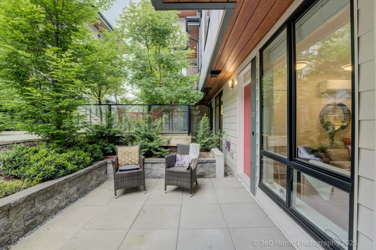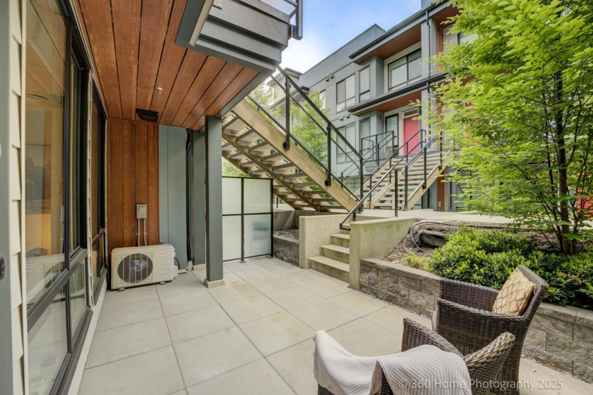 Ground-level garden home with private entrance built by ADERA in the DUET II/Cityhomes. This bright 2-bedroom, 2-bathroom home offers 932 sf with a functional layout. Kitchen with center island and quartz countertop, loaded with wall cabinets and premium appliances. Enjoy the comfort of air conditioning living indoors and outdoor with a spacious patio over 200 sq ft ideal for sunbathing or entertaining. Amenities include Lounge w/ kitchen and Fitness Center. Conveniently located just steps away to Burquitlam SkyTrain, shopping, schools, YMCA and parks, this home comes with 1 Parking and 2 lockers.