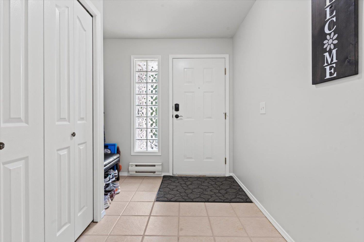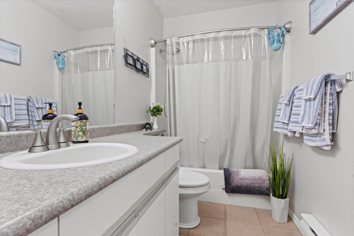 Well-kept 2 bed, 2 bath ground-floor townhouse in sought-after Little Mountain. Freshly painted with a bright, functional layout, this home offers spacious rooms, stair-free living, and a cozy gas fireplace. The kitchen features white cabinetry, tiled backsplash, and stainless steel appliances. Enjoy the private patio—ideal for relaxing or outdoor dining. The generous primary bedroom includes a 2-pc ensuite with walk-in shower, plus a full 4-pc main bath. Additional features include a laundry room with shelving, a dedicated storage room, and secure bike storage. Located in a well-maintained complex with clubhouse and workshop, close to walking trails. 2 pets allowed. Quick possession available—don’t miss out!