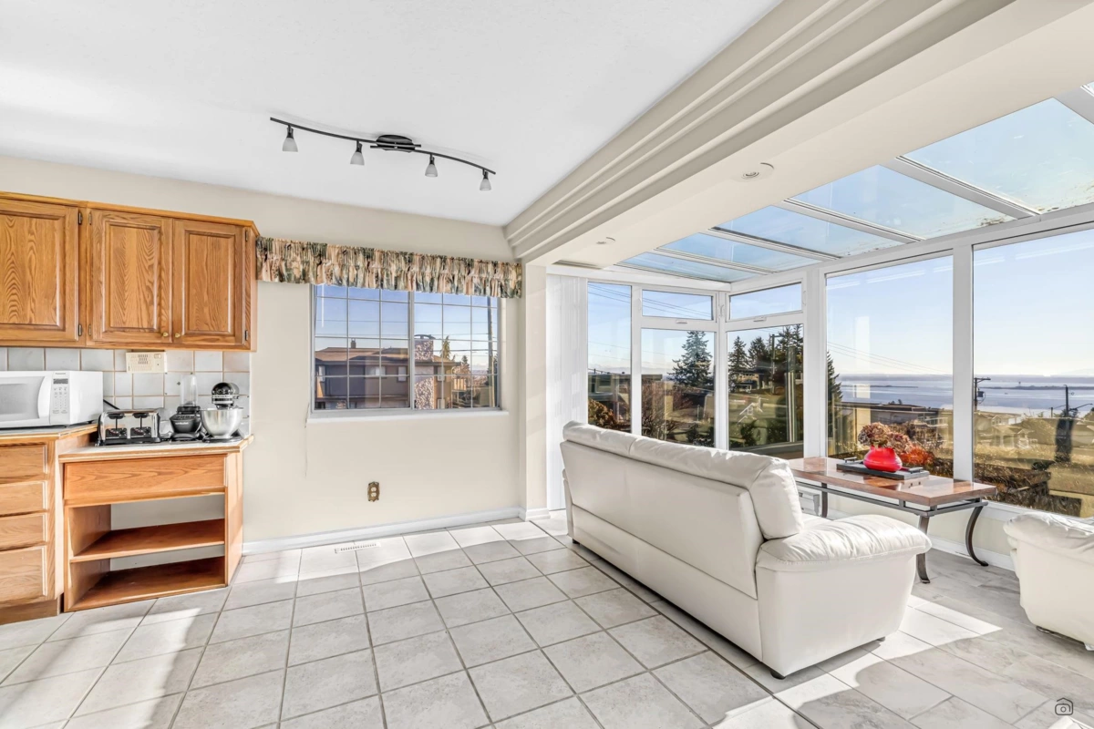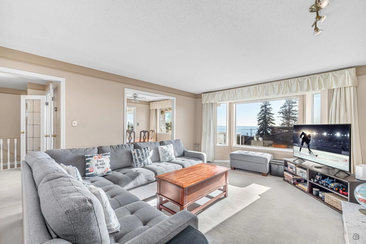 Stunning ocean views steal the show in this bright and spacious 4-bedroom, 3-bathroom home on a large corner lot. Enjoy breathtaking vistas from the solarium and balcony, while the sunlit above-ground basement offers its own laundry, a 25' x 20' walkout patio, and an 8' x 6' outdoor-access storage room—perfect for extended family living. Modern updates include sleek appliances, a newer hot water tank, and two cozy gas fireplaces. With ample parking, including RV space, this home is ideally situated in top school catchments: Semiahmoo Secondary (IB Program) and White Rock Elementary (Fine Arts). Steps from transit, Uptown shops, and three blocks to Peace Arch Hospital. Don’t miss the cinematic video and floorplans!