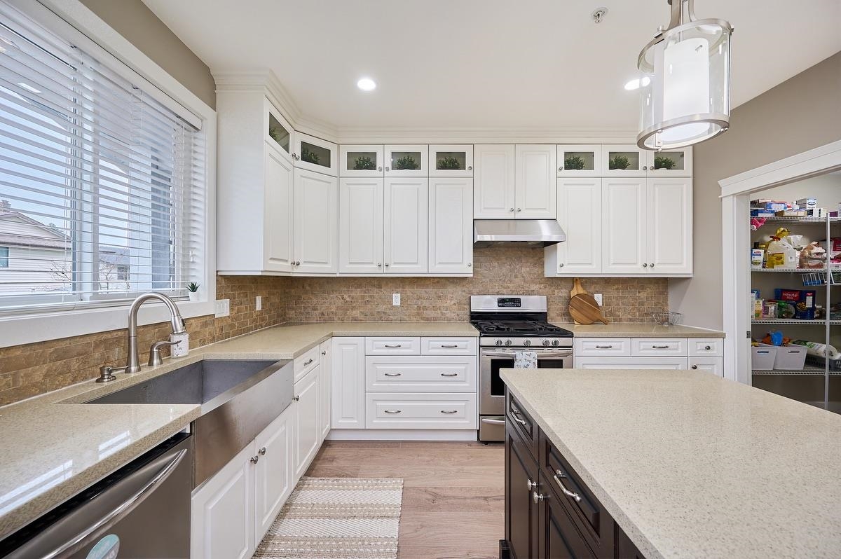 Beautifully European-built home offering 6 bedrooms and 4 bathrooms, with impressive volume and spacious rooms ideal for family living. Features include a gourmet kitchen with island and quartz countertops, 9 ft ceilings on the main floor, a rock-finished gas fireplace, and a floor-to-ceiling Great Room. The large primary bedroom includes an elegant 5-piece ensuite with a separate deluxe 5' x 4' shower and soaker tub. Additional highlights include air conditioning, a Lennox high-efficiency furnace, Navien hot water on demand, brand new flooring and paint, upstairs laundry, double garage, gas BBQ hookup, sprinkler system, and a 23'6 x 8' covered deck. The home also offers a long coloured concrete driveway, artificial turf in the front and back yards, and is roughed in for a basement suite.