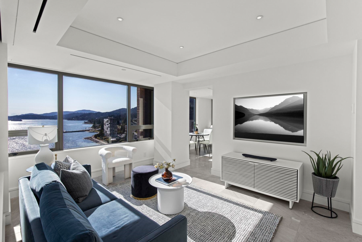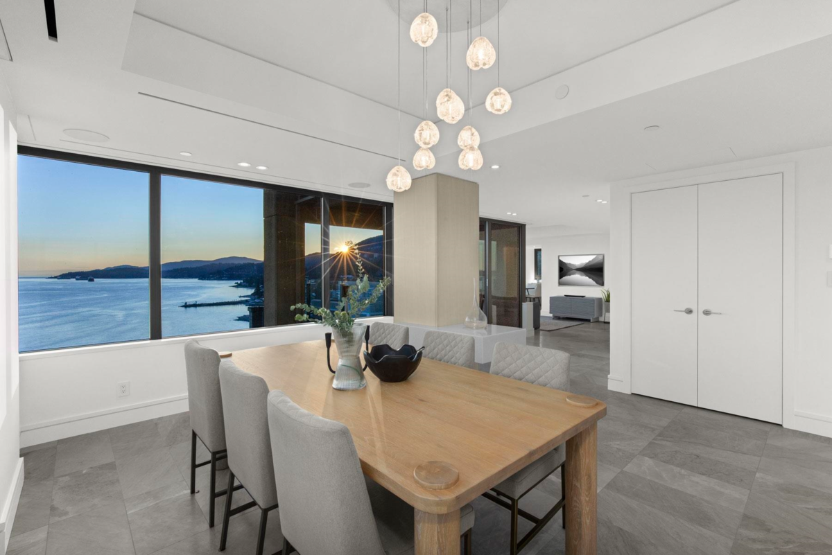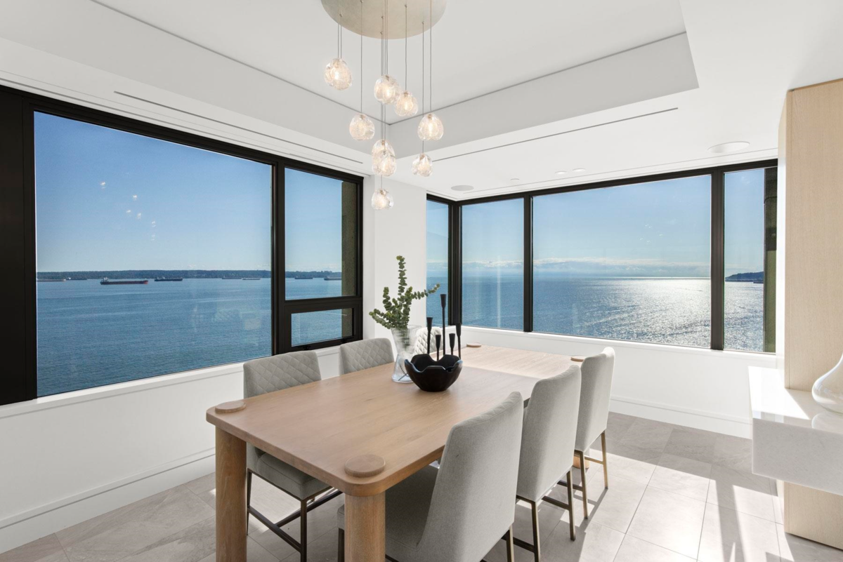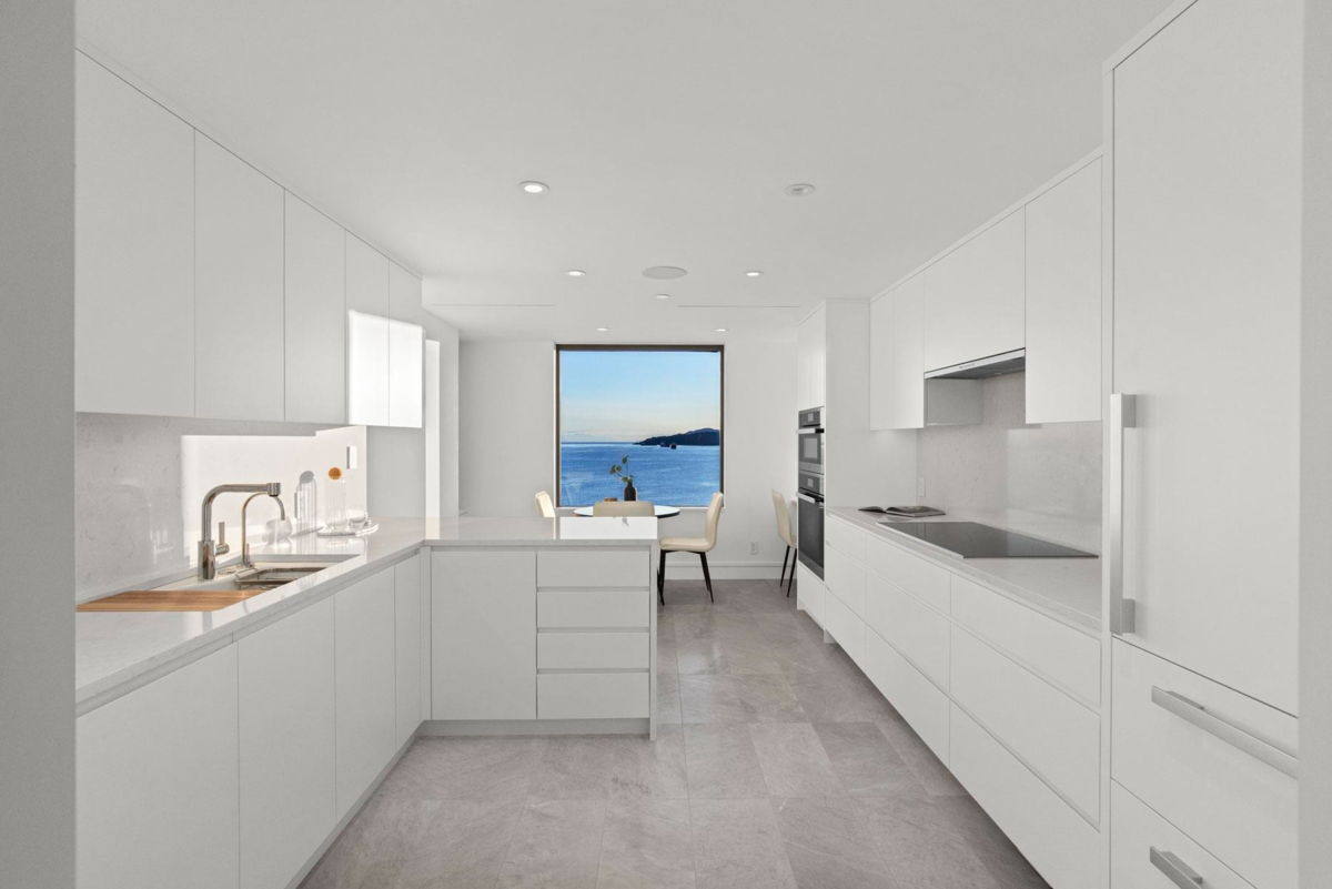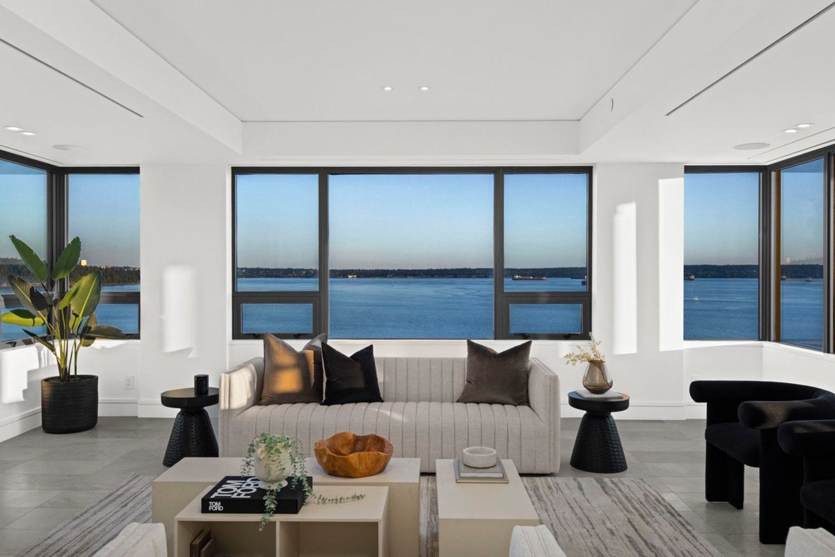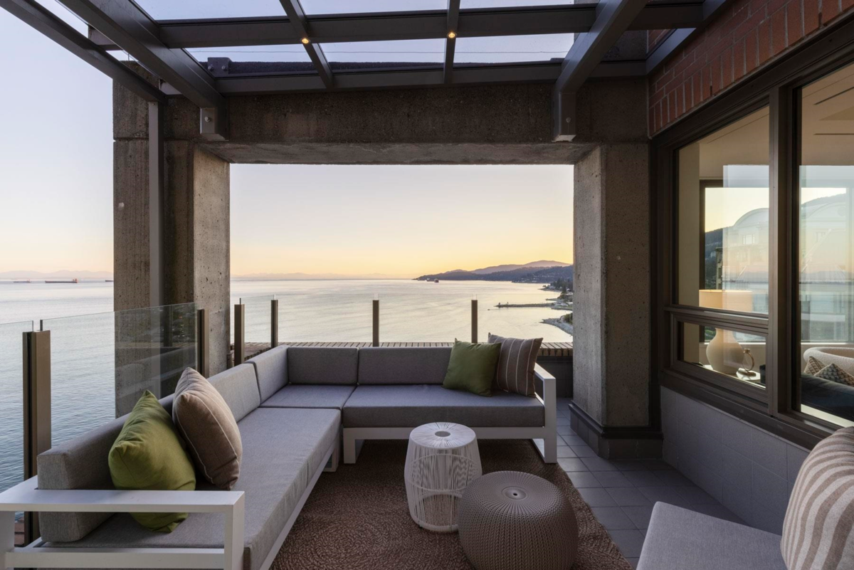 Welcome to Les Terraces, steps from the seawall, where only one unit occupies each floor. Spanning approx 3,000sqft, this sub-penthouse was substantially renovated to the studs at the highest level by Bradner Homes and HB Design. Open concept living/dining area w/ fireplace & incredible city, ocean & mountain views. Chef’s kitchen w/ Miele & Sub-Zero appliances, connected to the family room & large outdoor covered terrace. Stunning primary bdrm w/ covered patio & spa-like ensuite. Two more generous sized ensuite bdrms, full-size laundry room & powder room complete the impeccable floorplan. Other features include: automatic blinds, A/C, Lutron lighting, private 2 car garage w/ storage, 2 elevators, indoor pool, hot tub & on-site executive concierge. Steps to great cafes & restaurants.
