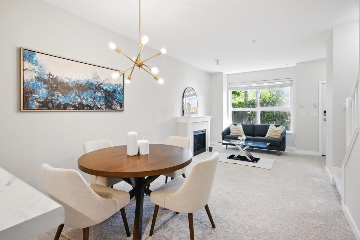Beautifully Appointed 2 bedrooms, 2 bathrooms townhome on a crawlspace, in the heart of Champlain heights, with no one above you or below you. LOW STRATA FEES, INCLUDES GAS AND HOTWATER! No need to wait for the elevator, your own private entrance. Move in condition!9 foot ceilings on the main. Freshly painted. NEW stainless Steel appliances including a Fridge,Gas Stove, Dishwasher and Hood Fan. Crisp white Kitchen cabinets.New Counters. Primary bedroom is large enough for a king bed with a his & hers closet,3-piece bath features a walk-in shower. Ultra private West facing patio, surrounded by mature trees. Lots of sunshine and away from E 54th.Exterior painting project is almost complete and paid for by the owner. 4 On site EV charging station. Walk to Champlain Mall,Library,Transit,school