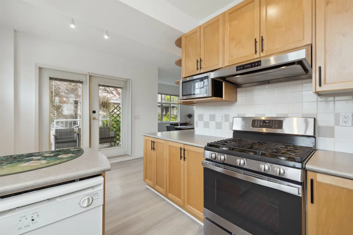 Beautiful 3-bedroom townhome in the highly sought-after Garry Lane - just a short walk to historic Steveston village! Conveniently located near Westwind Elementary, McMath Secondary, the Japanese Canadian Cultural Centre, and Steveston Community Park. This unique detached townhouse enjoys natural light from seamless living and dining space with durable laminate floors and a cozy electric fireplace, and a sunlit kitchen equipped with modern stainless steel appliances (including a gas range), sleek quartz counters, and French doors that open to a west-facing balcony featuring a gas BBQ connection. Hot water tank (2021) and roof (2022) are renewed.