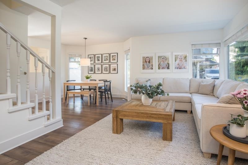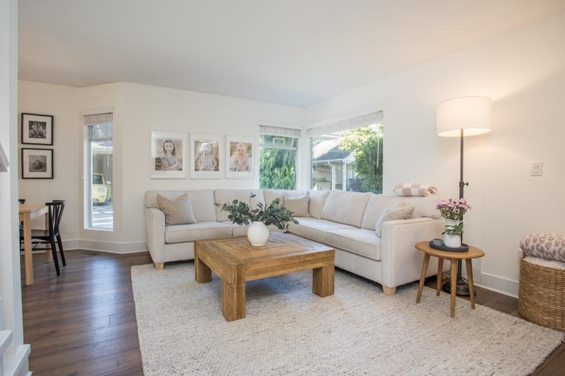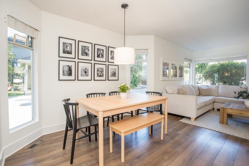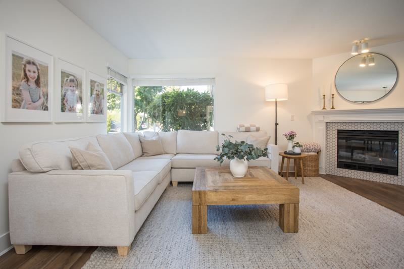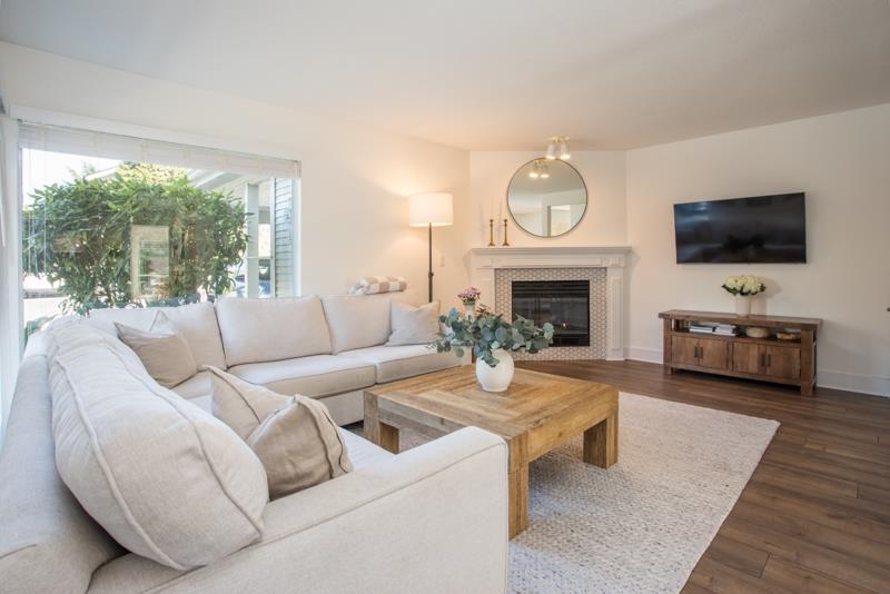 MAPLE GROVE-fully renovated with designer touches, 3 bedroom, 2.5 bath BARE LAND STRATA (maintenance fee only $115.50/mo) townhome in an amazing location. Laminate flooring throughout the terrific layout. Gorgeous open kitchen with island, custom cabinets, quartz counters & stainless appliances opens onto the fully-fenced, West exposed, low-maintenance backyard with concrete patio and mulched play area. Spacious living room features beautiful gas f/p with tile facade. Dining area accommodates harvest size table. Big primary bedroom has 4 pc ensuite with skylight. Main bath upstairs has supersize shower with beautiful tile work and niche area for soap etc. Single carport and 1 open spot right beside. Walk to Ladner Village, raise your family or downsize!