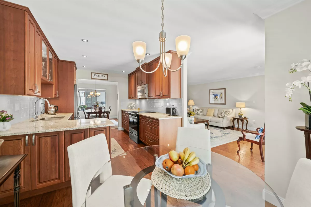 Beautifully updated and spacious 2719sf Townhouse with 3 balconies, a covered patio and a backyard with garden area, backing onto Glenbrook Ravine park! 4 Bed, 4 Bath, 3 Level, 3 fireplaces, 2 car attached garage. Quiet and private w/ no through traffic (end cul-de-sac). Backs onto a forest, enjoy the birds and views of the Fraser River in the winter. Updated kitchen & bathrooms, hardwood floors, moulding & millwork, lighting & brand new boiler. Fantastic layout for families with 3 Bed, 2 Bath Up, a spacious primary bedroom with ensuite & walk in closet. Below: 1 Bed/Office, 1 full bath, a large rec room w/ gas fireplace leading onto the ground level patio & yard, bathroom w/ shower. Convenient access to parks, schools, shopping & transit.