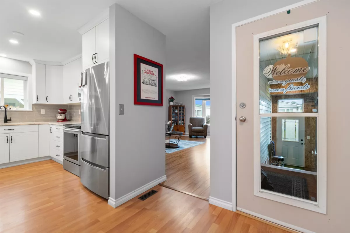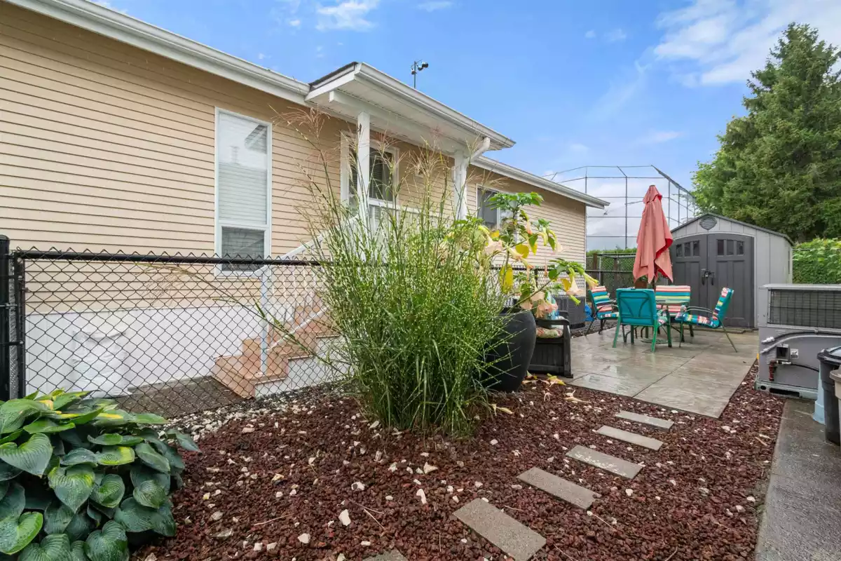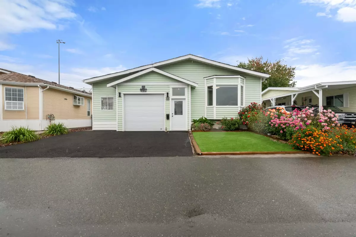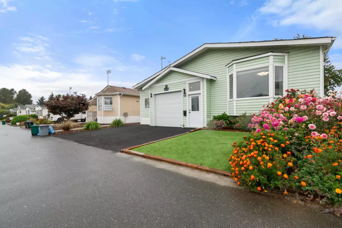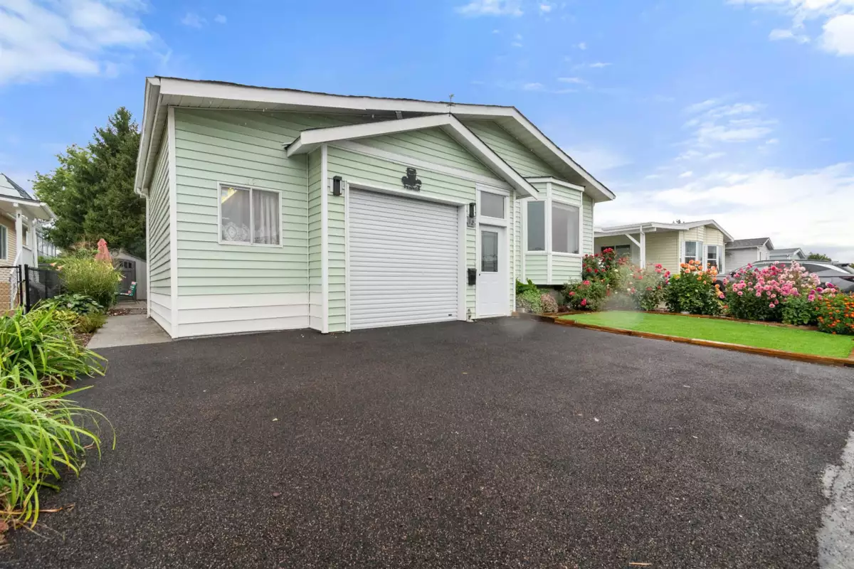 Welcome to 40+ Rainbow Estates! This beautifully updated 2-bed, 2-bath home with a flex room (ideal office or den) offers over 1,700 sq. ft. of bright, open living. Remodeled kitchen with quartz counters, tile backsplash, soft-close cabinetry, and large pantry. Updated bathrooms, fresh paint, vinyl windows, PEX plumbing, newer roof, 2x6 construction, and forced-air natural gas furnace with A/C. Cozy gas fireplace for year-round comfort. Fully landscaped yard with artificial turf, garden beds, 10x16 patio, 8x10 shed, plus single-car garage and parking for two more vehicles on rubberized driveway. Centrally located near shopping, hospital, and leisure centre. New lease to 2072, low monthly fees, free RV parking, and no property transfer tax make this an exceptional opportunity!