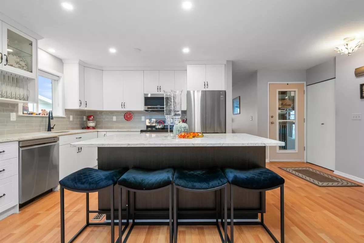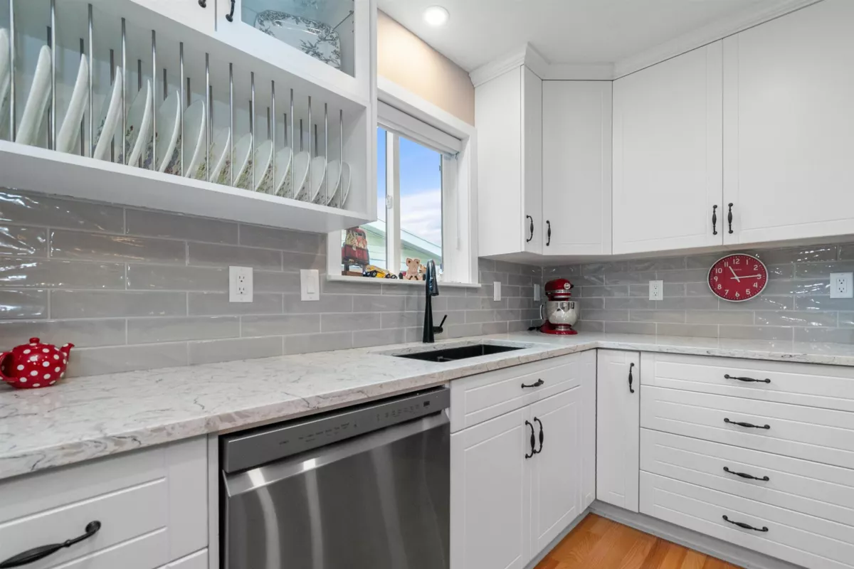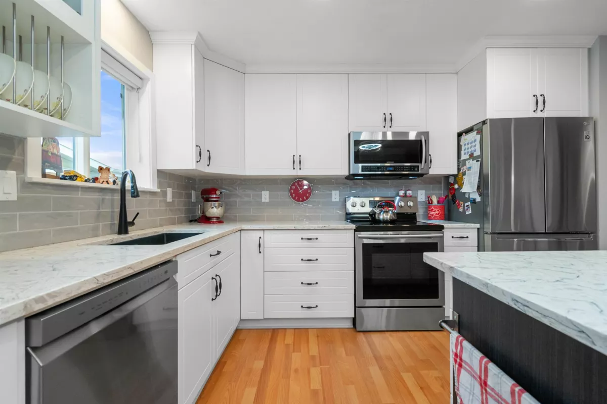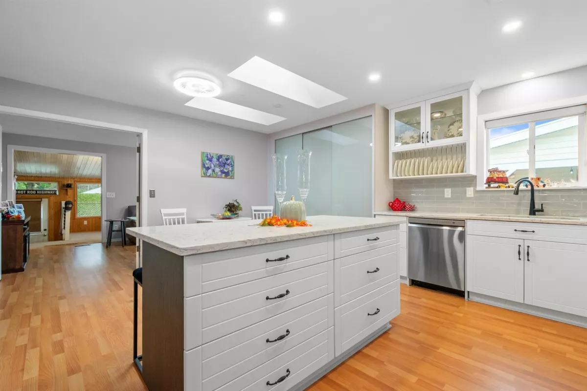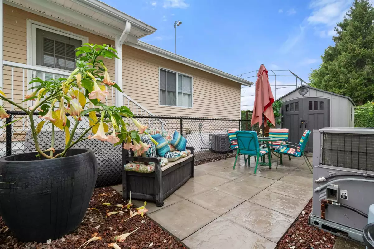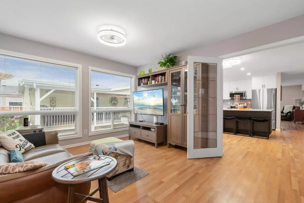 Welcome to 40+ Rainbow Estates! This beautifully updated 2-bed, 2-bath home with a flex room (ideal office or den) offers over 1,700 sq. ft. of bright, open living. Remodeled kitchen with quartz counters, tile backsplash, soft-close cabinetry, and large pantry. Updated bathrooms, fresh paint, vinyl windows, PEX plumbing, newer roof, 2x6 construction, and forced-air natural gas furnace with A/C. Cozy gas fireplace for year-round comfort. Fully landscaped yard with artificial turf, garden beds, 10x16 patio, 8x10 shed, plus single-car garage and parking for two more vehicles on rubberized driveway. Centrally located near shopping, hospital, and leisure centre. New lease to 2072, low monthly fees, free RV parking, and no property transfer tax make this an exceptional opportunity!