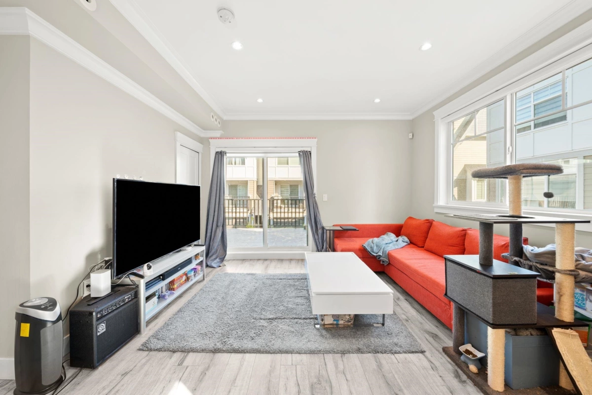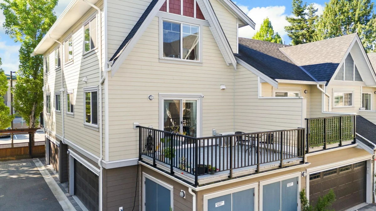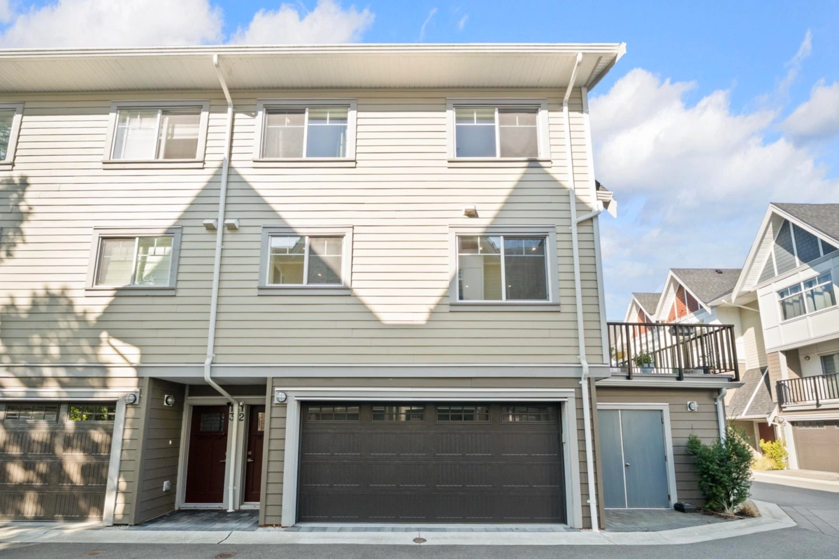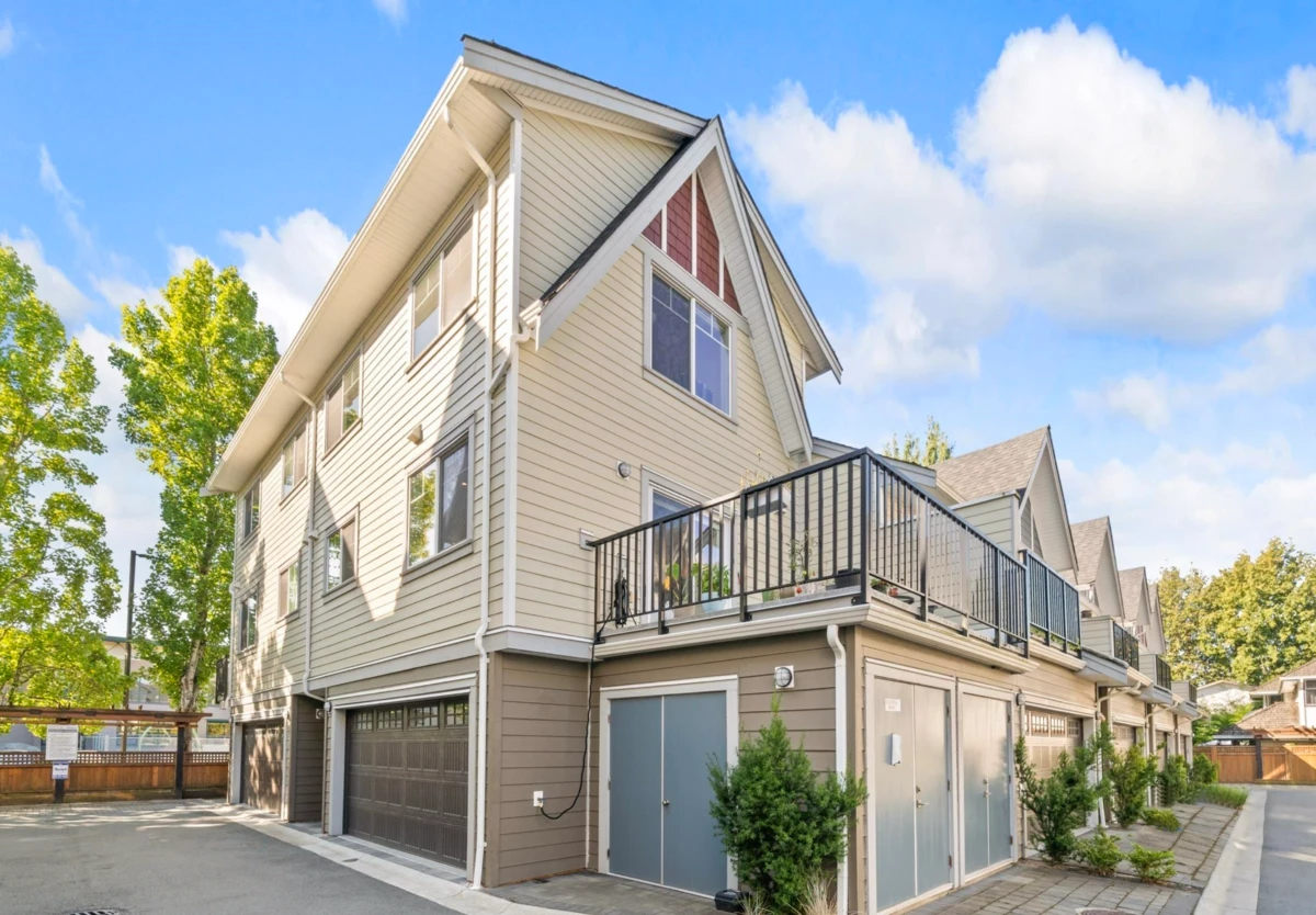 A True Gem in "SERENE Townhome"! Welcome to a stunning-spacious north-east CORNER 2 bed (both ensuites) 2.5 bath townhome features a huge private patio & double SIDE-BY-SIDE garage. The open-concept floorplan boasts soaring 9-FOOT ceilings (main & above) & gourmet kitchen w/ premium Fisher & Paykel appliances (gas cooktop, french-door fridge, dual-drawer dishwashers), LED lighting, jetted-bathtub, security system, central vacuum. Enjoy year-round comfort w/ central A/C, heating. No pets restriction! Perfectly located, this home is close to shopping, major hwys, bus routes. Just 1 block from Garden City Park & within walking distance of both Henry Anderson Elementary & MacNeil Secondary. This is a rare opportunity for a perfect blend of luxury & convenience. Book your private showing now!