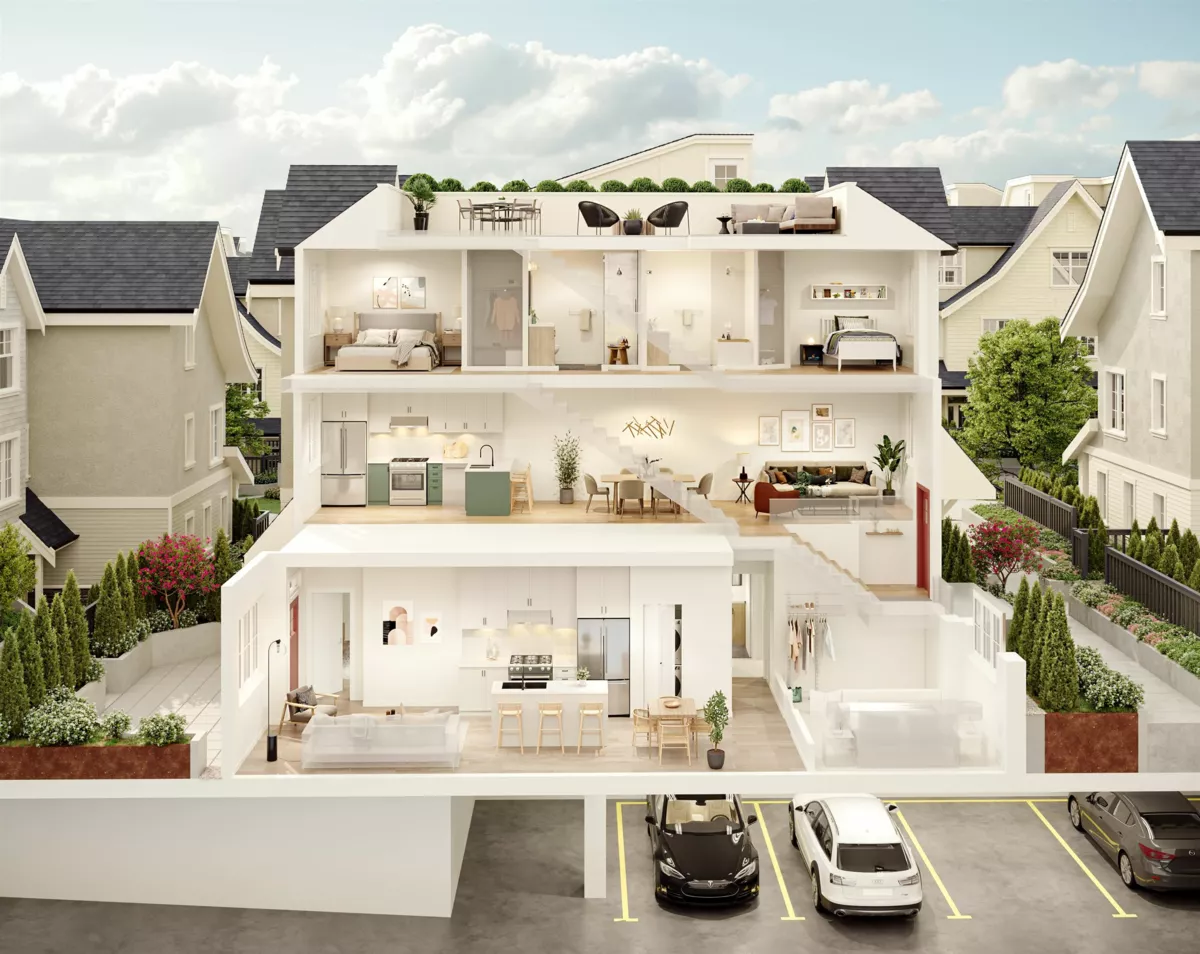 MOVE IN READY - ASSIGNMENT OF CONTRACT. Welcome to Robinsons Parkside Collection! This stunning 2-bed, 3-bath + LEGAL Lock-Off townhome offers a spacious 1,152sq. ft. of interior living space. Featuring high-quality finishes, open concept living areas, and an 158 sq.ft. outdoor space. This home is perfect for families or professionals. The lock-off suite provides flexibility for rental income or a home office. Plus, enjoy the convenience of two parking stalls! Located in a vibrant community close to parks, SkyTrain, schools, and shopping. The best part - this home has $127,000 in value added upgrades including AC! Don't miss this opportunity to own in this sought-after development.