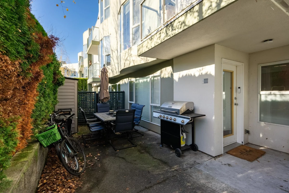 SUNNYVALE - A quiet & well run complex in central Richmond! This 2 Bed, 2 Bath CORNER unit is conveniently located on the ground floor with a separate outside entrance and lots of privacy from the well-maintained landscaping. Offers a functional layout, over 1000 sqft of living space and a sleek, modern kitchen with white cabinets, S/S appliances, and quartz breakfast bar. BONUS: 2 secured parking stalls + a large 282 sqft south facing patio perfect for entertaining. Amenities: indoor pool, hot tub, & gym. Well mantained building with new roof installed in 2016 and exterior maintenance done. Walking distance to transit, shopping/recreation, and schools (Gen Currie Elem. & Palmer Sec). Very rare to have this square footage and amount of privacy in a condo - Call today for a private viewing.