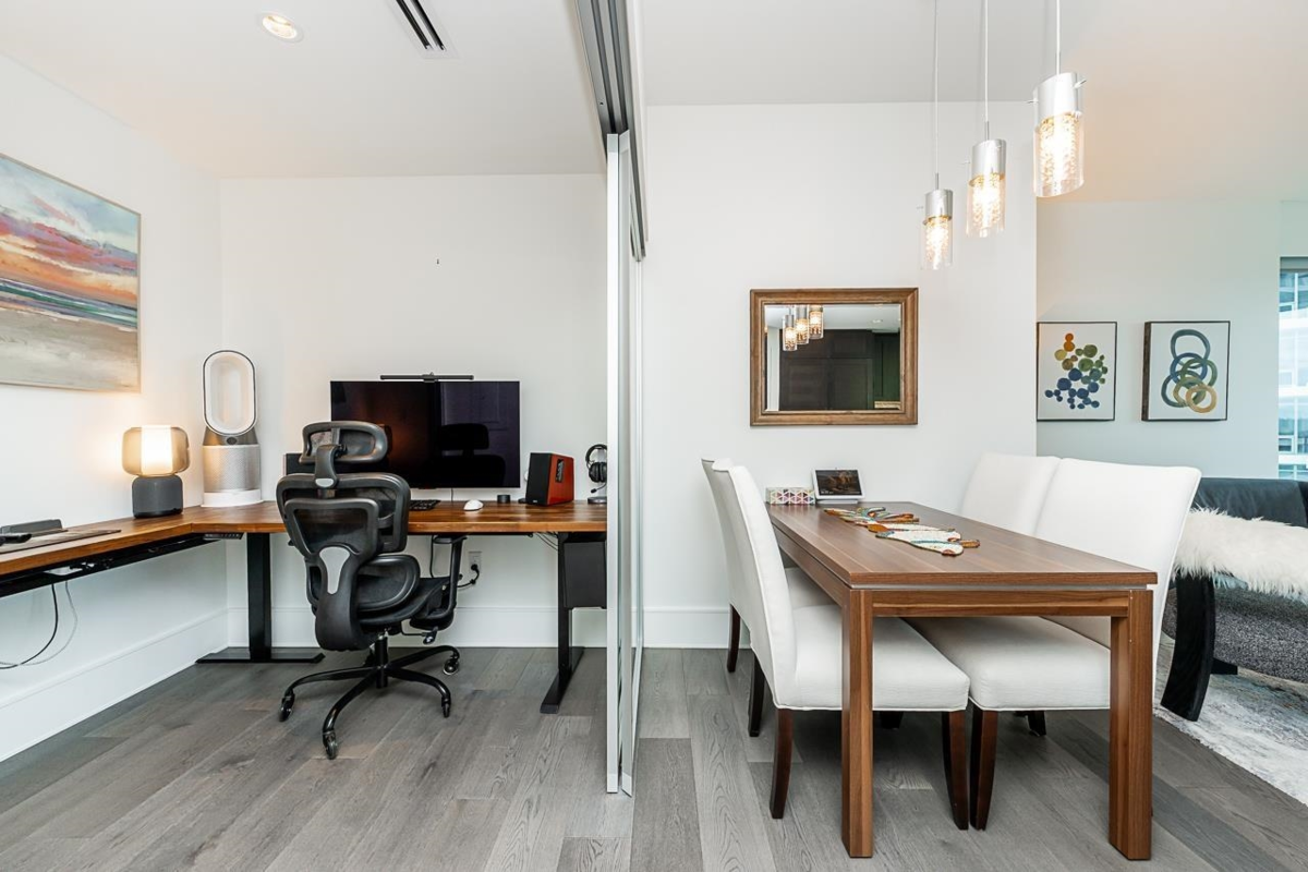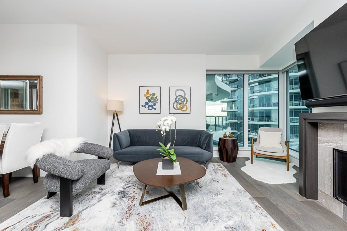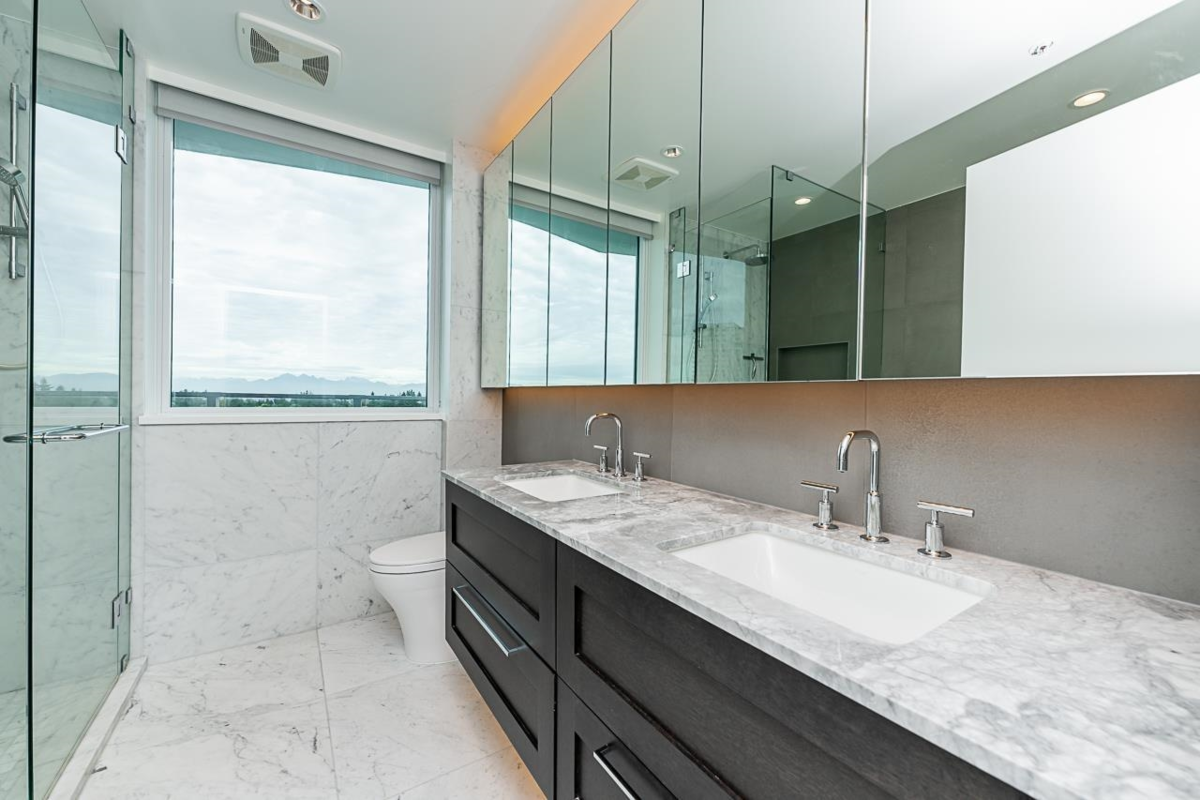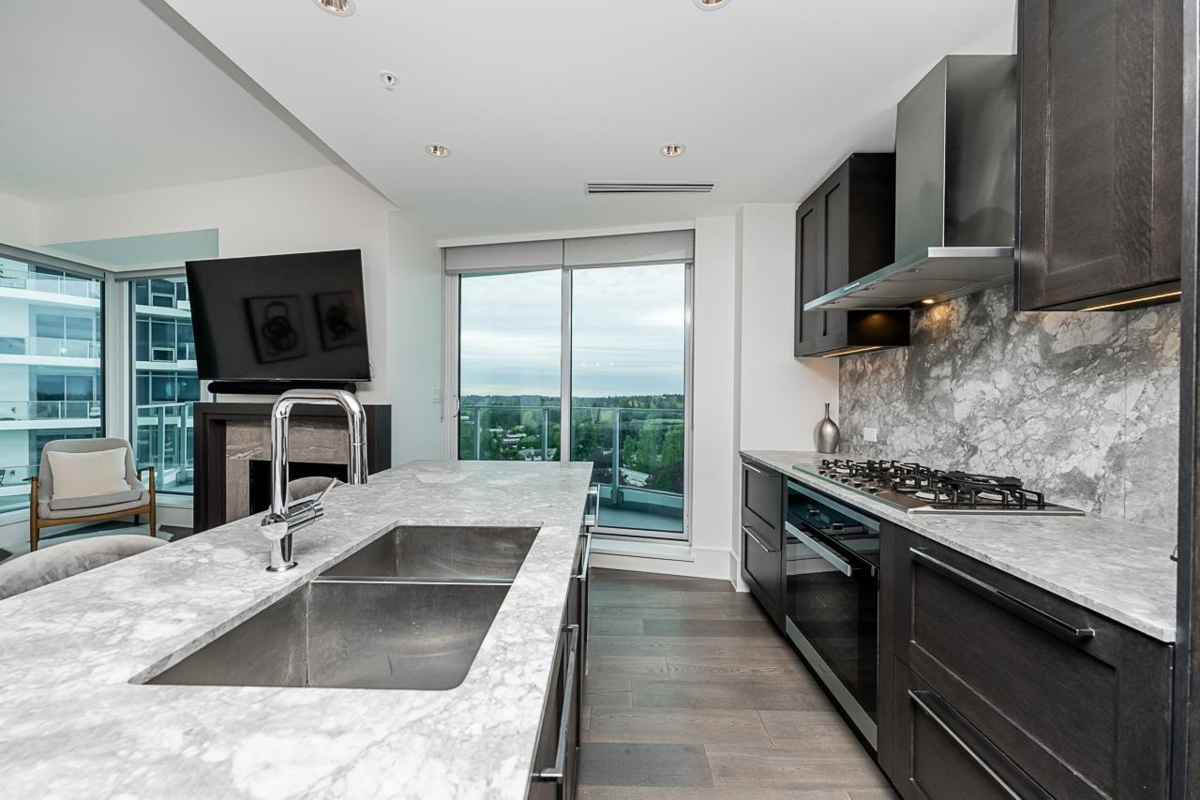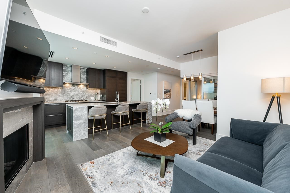 FOSTER MARTIN - The epitome of luxury in the heart of White Rock! This beautiful 2 Bed, 2 Bath & Den Corner unit has it all. Enjoy the panoramic view of Mountain Baker & the ever exciting waters of Boundary/Semiahmoo Bay from the 2 balconies which seamlessly allows indoor living to expand to the outdoors. Excellent floor plan boasts lots of natural light & space. Thoughtfully designed with elegant touches to inspire, featuring top-of-the-line Miele appliances, hardwood floors, carrera marble tiles and countertops, a cozy gas fireplace and upgraded fixtures. Amazing 10,000 sq.ft. amenities. Walking distance to everything. School catchment, White Rock Elementary and Semiahmoo Secondary.