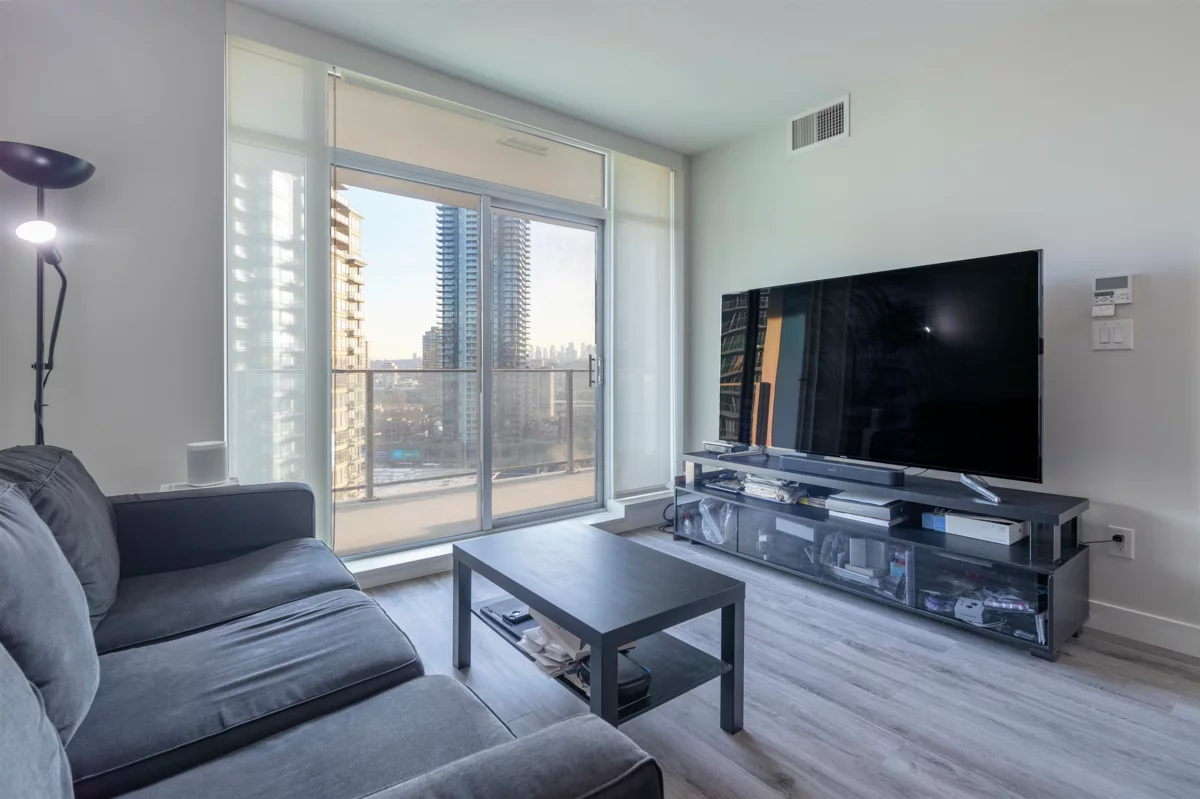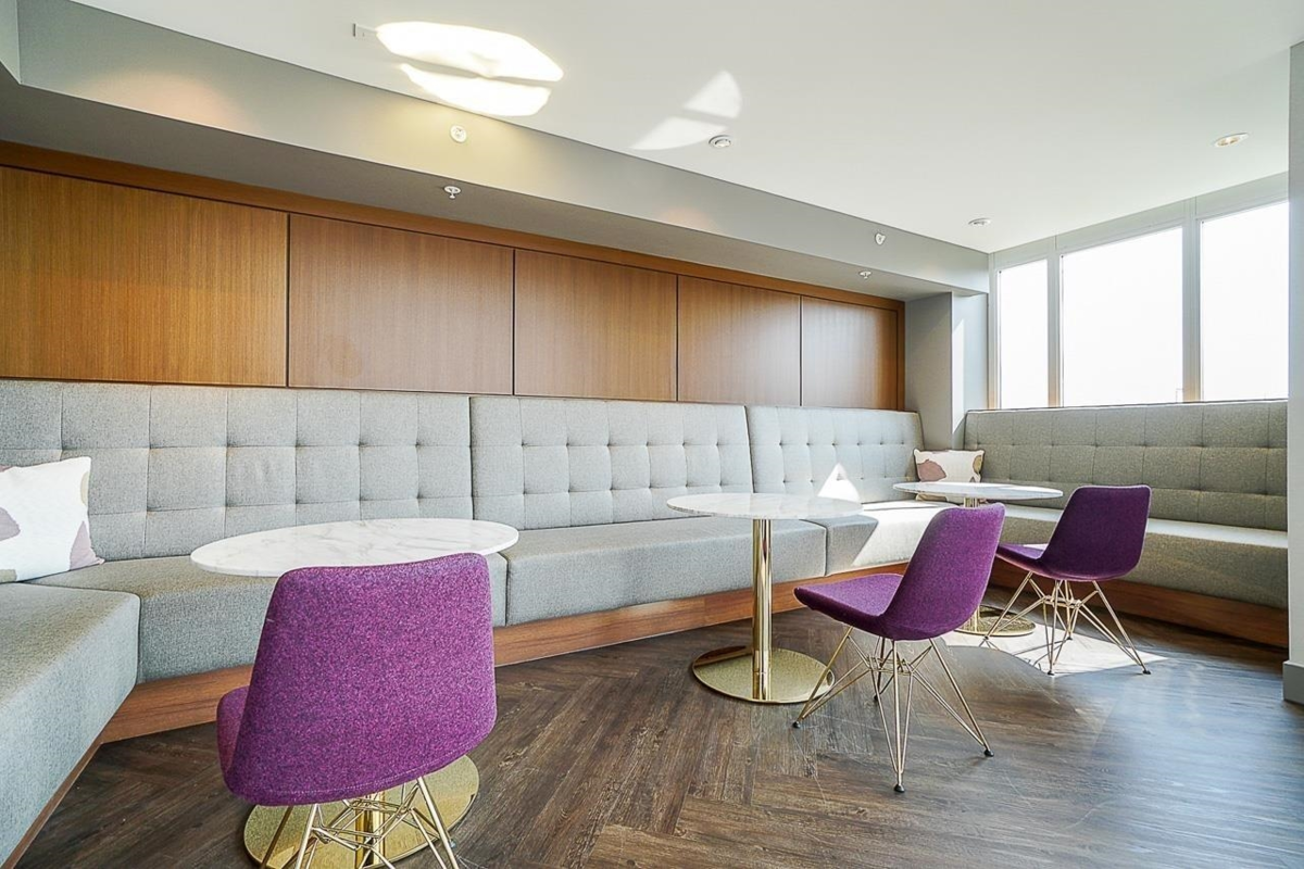Welcome to Escala by Ledingham McAllister, this stunning tower soars atop the Brentwood neighbourhood just a stone's throw away from everyday conveniences. Come see this rare 1 bed+den facing sunny south east with views of Metrotown skyline. This home boasts comfort and luxury, the thoughtfully designed floorplan wastes no space, the heat pump air-conditioning system keeps you warm and the gourmet kitchen with stainless steel appliances will meet your every need. Located in close proximity to Brentwood Town Center, Gilmore Skytrain Station, New T&T Supermarket, and dozens of top restaurants, you won't have to go far for a night in or out! For families with kids, nearby are Kitchener Elementary and Alpha Secondary Schools. Don't miss your chance today. Open House Jan 31/Feb 1, 2-4PM!