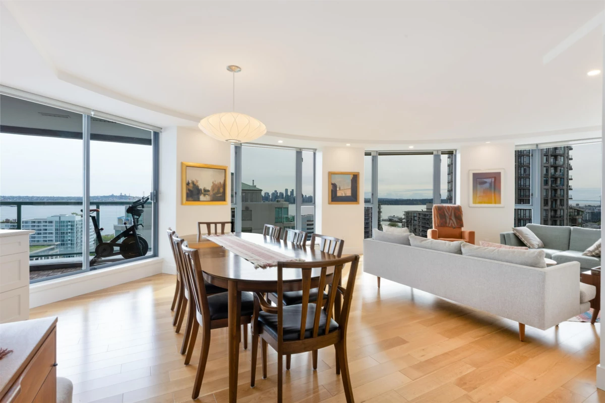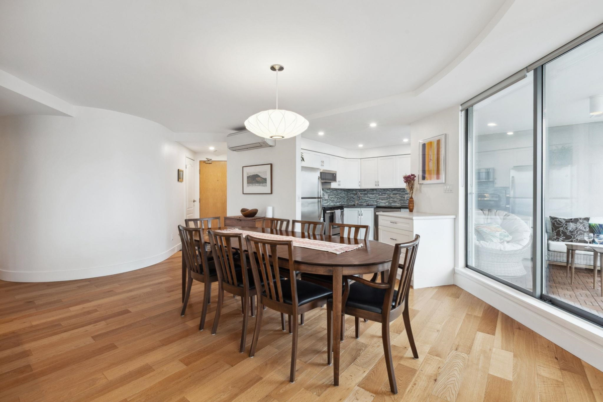 At nearly 1,200 sqft, this elegant 2 bdrm / 2 bthrm home stands out in a sea of new-age shoeboxes. Extensively and tastefully renovated with AIR CONDITIONING, it offers panoramic views from Brentwood across Vancouver to the Lions, with stunning winter sunsets over Stanley Park that brighten the season. Enjoy a complete lifestyle with resort-style amenities including a 20m outdoor pool, hot tub, and gardens. Two secure side-by-side parking stalls, storage, shared EV-charging, and reinforced bike storage add everyday convenience. A proactive strata with a strong contingency fund ensures peace of mind. Just a 7-minute walk to the Seabus and steps to shops, cafes, and trails, this home blends space, comfort, and lifestyle in the heart of Lower Lonsdale.