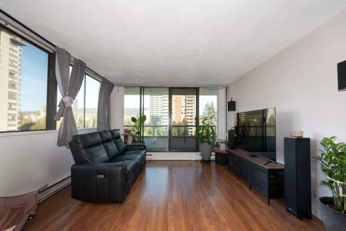 Welcome to your renovated 2 bed/2 bath corner home in vibrant Lougheed Town Centre. Enjoy a spacious living/dining area with mountain and city views, and a covered balcony perfect for year-round BBQs. The updated kitchen offers plenty of cabinet and counter space, with modern laminate hardwood flooring throughout. The large primary bedroom features an ensuite for your comfort. In-suite laundry, secure parking and storage add convenience. Resort-style amenities include an outdoor pool, sauna, hot tub, gym and games room. Across from Keswick Park with basketball, tennis and playground. Steps from Lougheed Mall, Skytrain, Cameron Rec Centre, schools, and golf. Call today to make this home yours!