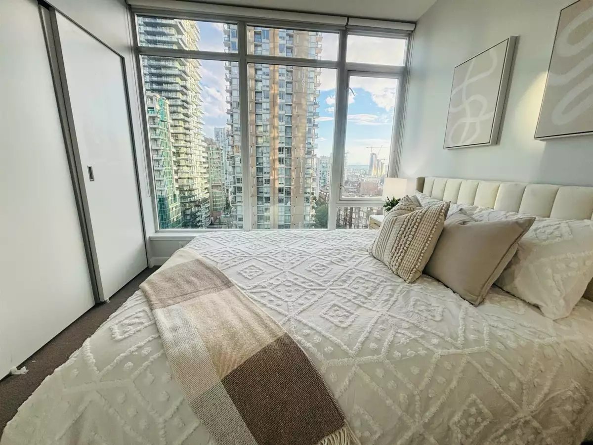 Measurements by Realtor. If deem important, verify by buyer/buyer's agent. Beautiful South facing with city View on the 12th Floor. 2 Sizable rooms , 2 Full baths with one Den. Corner Unit, Bright and Quiet! Low Density Building. Walkable distance to Yaletown and seaside. Location, Location. Must See. Open House Sat Aug 30 @ 2-4 pm