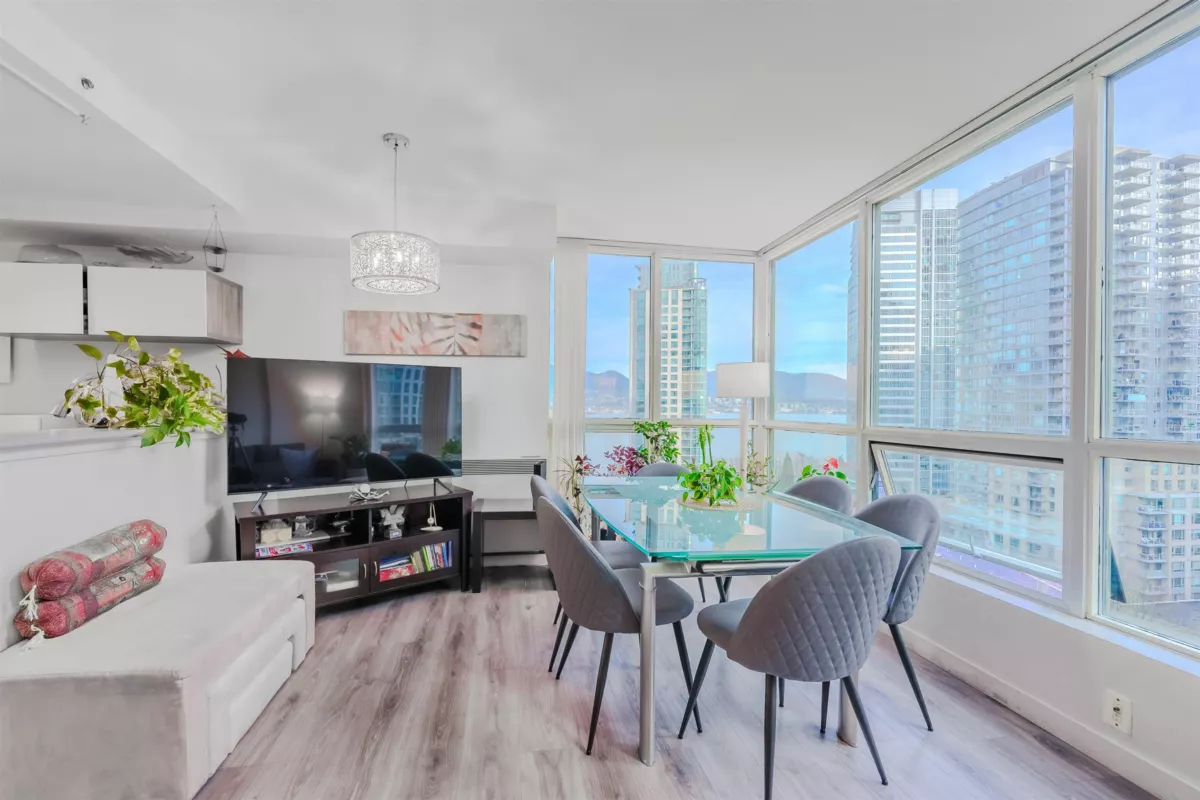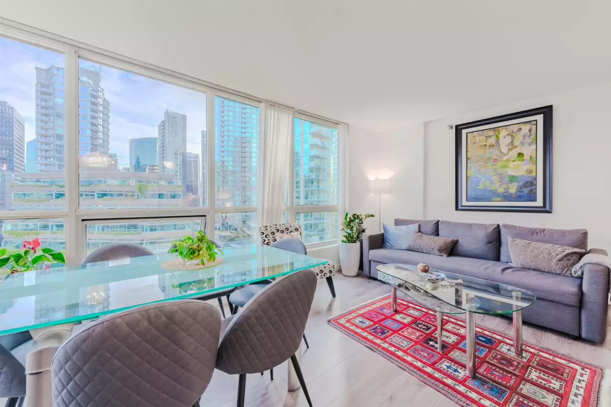 Spacious 589 sq-ft 1-bedroom with 1 parking and 2 lockers at the iconic Harbourside Park II, an architectural gem designed by Arthur Erickson. Open-concept layout and floor-to ceiling windows with great natural light, overlooking ocean, city and north-shore mountain views. Efficient floorplan with den and zero wasted space blend of urban convenience and waterfront lifestyle. At very low strata fee in downtown, enjoy great amenities including indoor pool, hot tub, fitness center, BBQ areas, and rooftop observation deck. Visitor and EV parkings available. Steps away to Coal Harbour Seawall, Stanley Park, city's finest dining and Downtown's financial district. An incredible chance to own in one of Vancouver's most sought-after neighborhoods.
