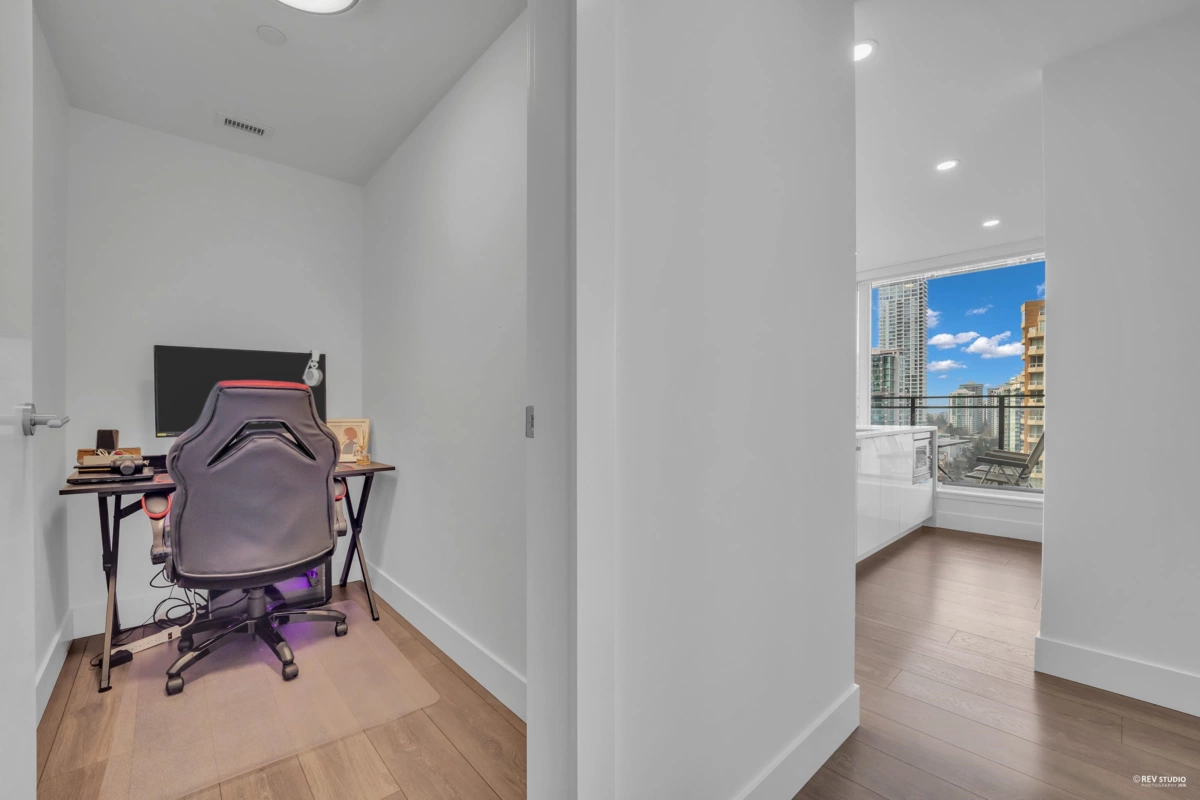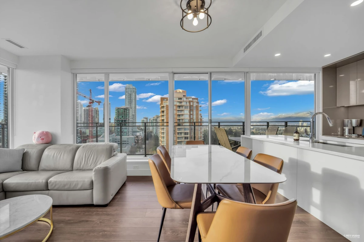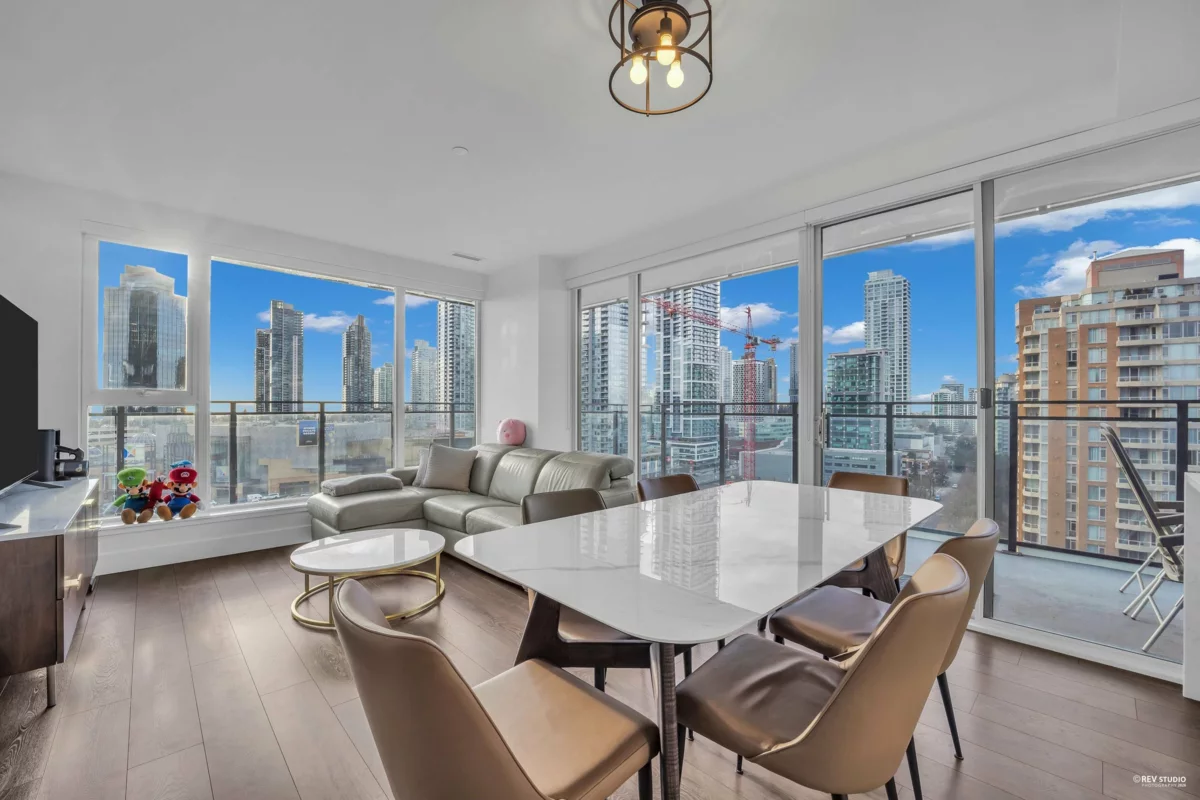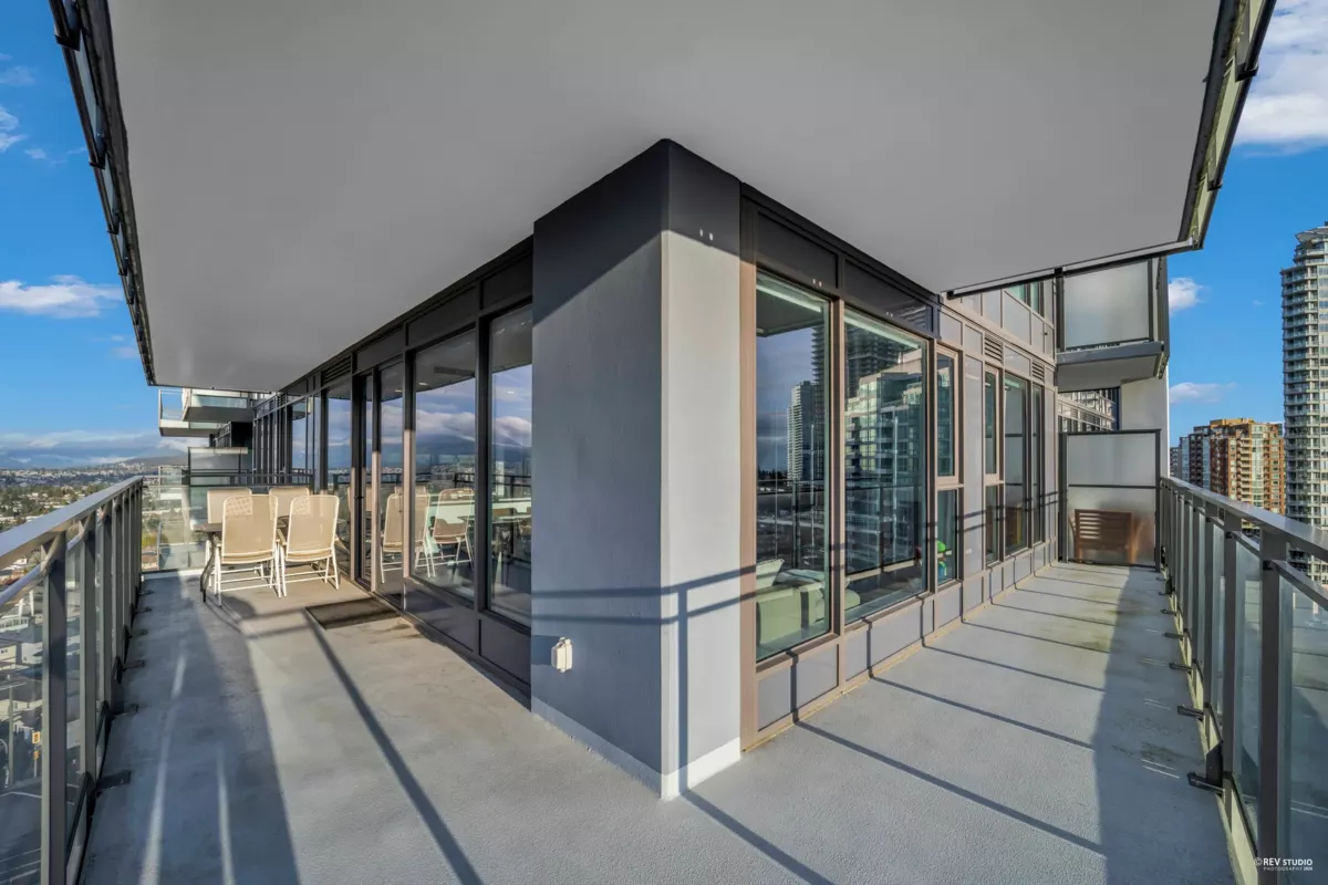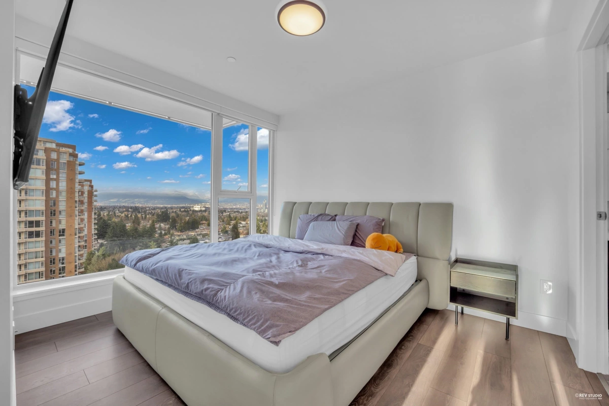 Sussex by Townline – Metrotown. Concrete high-rise just steps to Metropolis at Metrotown and SkyTrain. Bright and quiet south-west facing corner unit with unobstructed mountain, park, and city views. Functional 2 bedrooms + den, 2 baths, air conditioning, and Bosch & Blomberg appliances and a recently upgraded full-size LG washer & dryer. Features a spacious 320 sq. ft. balcony, 1 parking and 1 locker. Over 6,000 sq. ft. of premium amenities including fitness centre, bowling lounge, guest suite, and 24/7 concierge. Prime location close to shopping, schools, parks, and all daily conveniences. Open House: Jan 31 & Feb 1 (Sat&Sun) 2pm-4pm