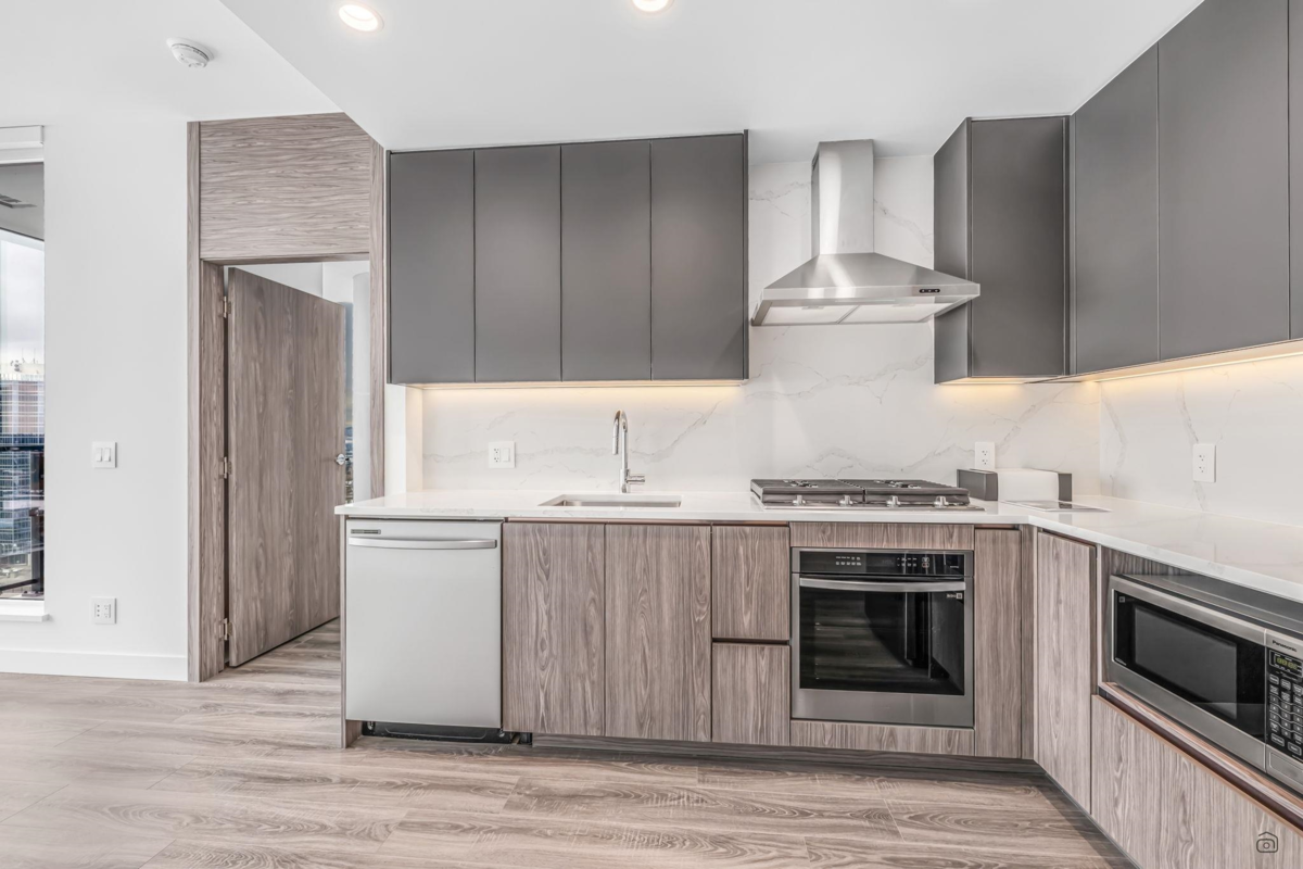 Welcome to The Grand on King George. This beautiful 2-bedroom, open-concept home offers a bright and spacious living area with a terrace showcasing stunning mountain, city, and valley views. Located just a 4-minute walk to Gateway SkyTrain Station, it provides easy access to downtown Vancouver and across Metro Vancouver. Residents enjoy over 23,000 sq. ft. of indoor and outdoor amenities, including a modern fitness center, social lounges, and landscaped outdoor spaces. The unit features air conditioning, a gas cooktop, and full-size stainless steel Samsung appliances. With 24-hour concierge service, The Grand offers comfortable and stylish living in Surrey. Don’t miss this great opportunity.