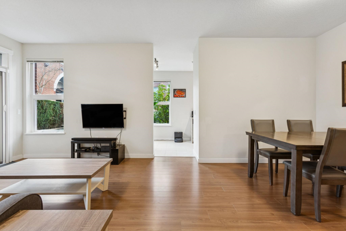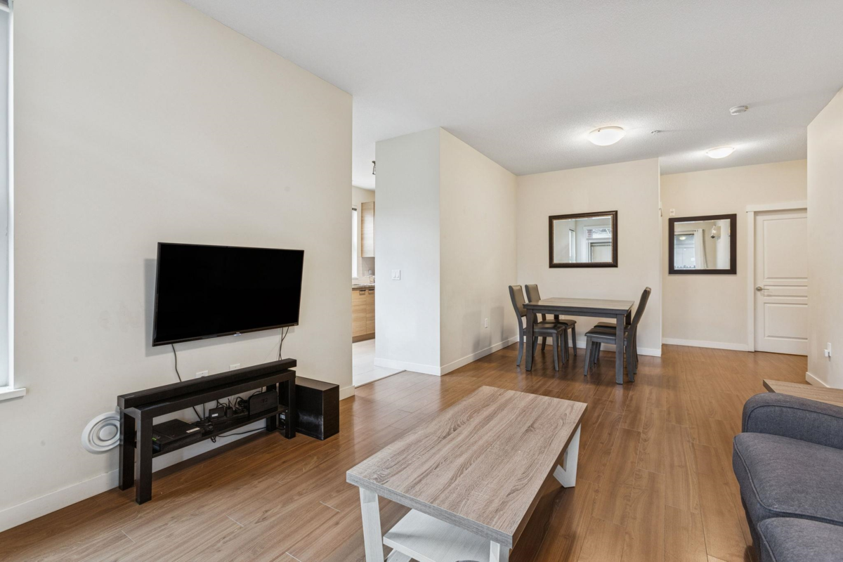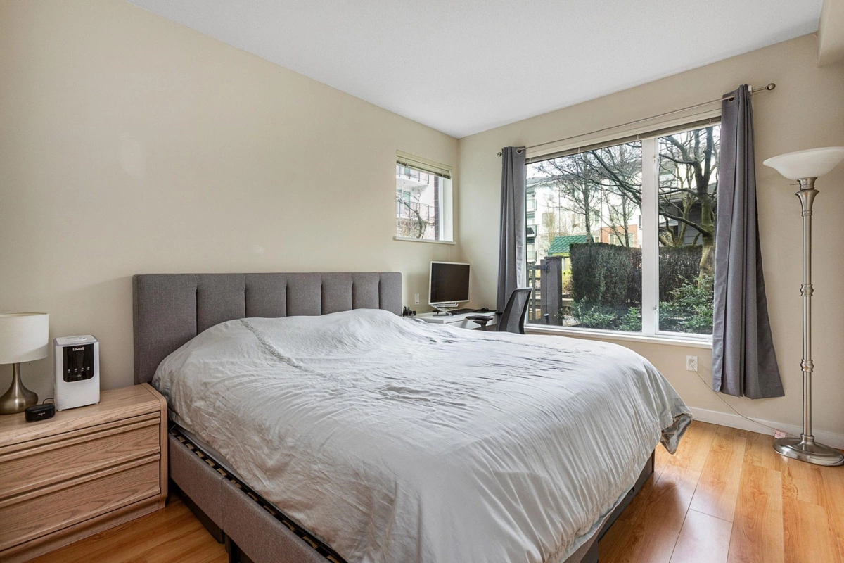 Welcome to Mayfair Place by Polygon, ideally located in the highly sought-after West Cambie neighbourhood! This meticulously maintained ground-floor home offers exceptional comfort, space, and convenience. The spacious layout features a generous living room, formal dining area, and a dedicated eating nook, perfect for both everyday living and entertaining. The massive primary bedroom easily accommodates a king-size bed and includes a spacious walk-in closet. Enjoy quality family time in your private patio or take advantage of the resort-style amenities, including an outdoor pool, hot tub, fitness centre, clubhouse, theatre room, games room, and guest suite. Includes 1 parking stall and 1 storage locker. Just steps to shopping, dining, transit, and quick access to Canada Line.