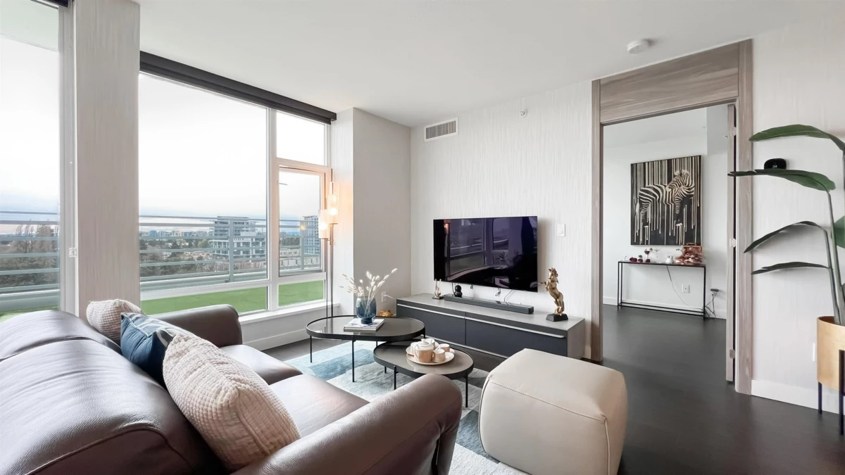 Average size of families in the area adjacent to home for sale 1212 8800 Hazelbridge Way is 2.5. This is Low number in comparison to the whole region. Percent of families with children near by the Real Estate Listing - MLS® R2772089 is 52.2% and it is Below Average. % of Married or living common law is around 50.2% and it is Below Average.