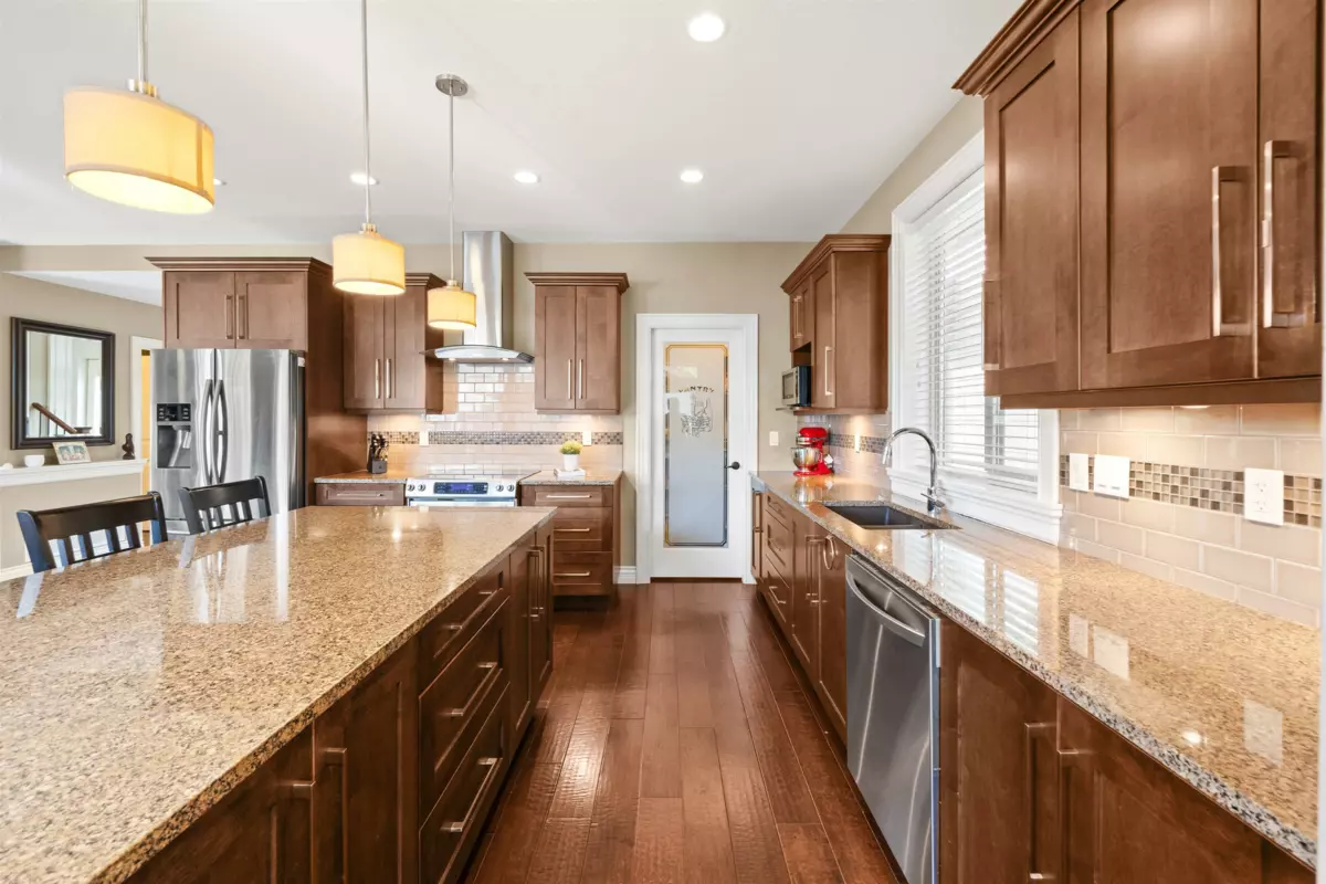 One of fastest growing neighbourhoods in Greater Vancouver for community feel, amenities, & proximity to nature! Nestled away on quiet cul-de-sac & premiere street - 6 bed 4 bath 3769sf 2x6 construction custom built home on corner lot w/fantastic family layout!Spacious open concept kitchen/living/dining on main flr feat hardwood flrs, granite counters, wood cabinetry, Bertazzoni range, walk in pantry, cozy gas fireplace, large windows for great natural light, walkout patio & backyard, plus large den/7th bed & central A/C!Up 4 good sized beds incl beautiful primary w/walk in closet & 5 pce ensuite! Down large rec room plus 2 bed legal suite w/laundry.2 car detached garage & 5 total parking. Prime location, steps to schools, parks, trails, transit,&shopping.