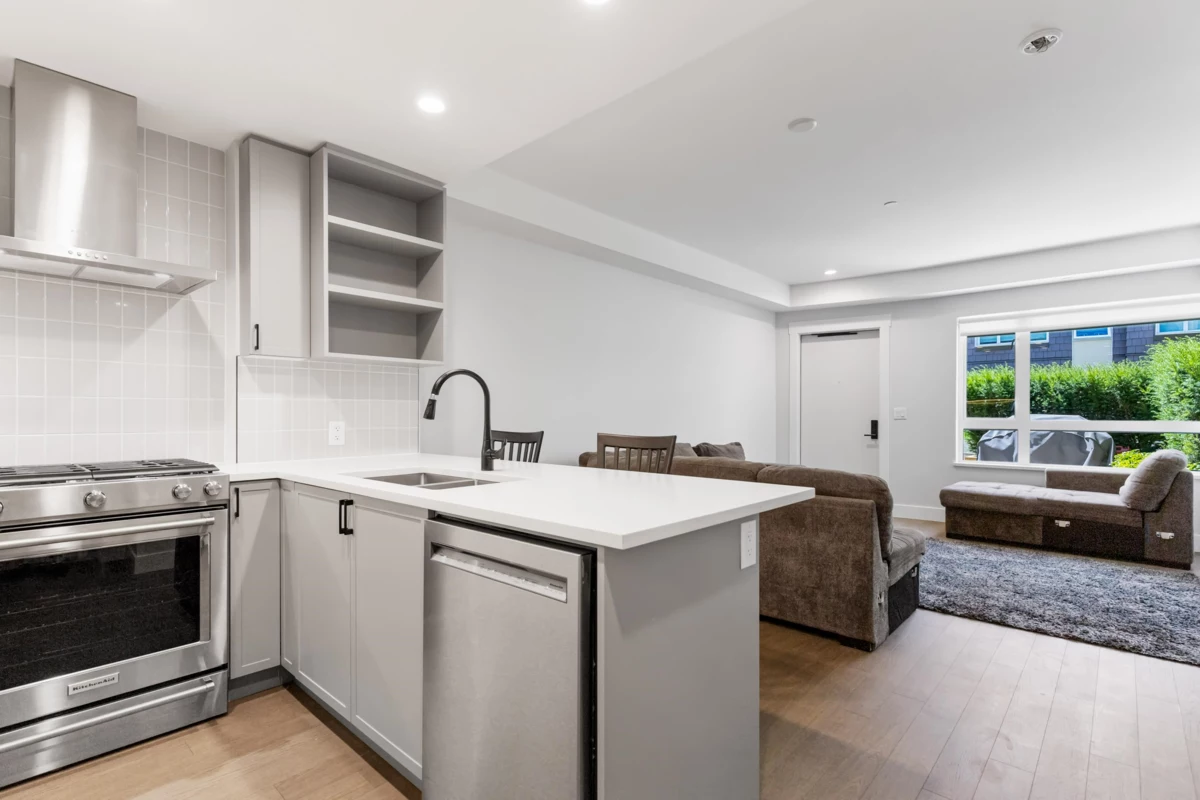 Discover the epitome of luxury living in this stunning townhome by ERA, located in the vibrant heart of Maple Ridge. This thoughtfully designed residence features a private patio & gate, ensuring an extra layer of privacy. Spread across three levels, the home offers 3 bedrooms & 3 bathrooms, adorned with top-notch finishes like European-inspired design elements, air conditioning, soundproofing & sleek cabinetry. The gourmet kitchen is a chef's dream, equipped with stainless steel appliances & polished quartz countertops. ERA’s prime location allows for easy walking access to schools, shopping centers, public transportation & the West Coast Express. Additional perks include two designated parking spots and ample storage space.