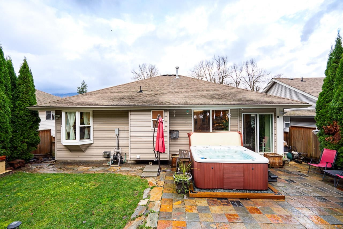 Welcome to Home 122 at the exclusive Chilliwack Mountain community, Trails at Longthorne Creek. This updated 4 bed/3 bath home boasts vaulted ceilings, huge chefs kitchen with quartz counters, pantry and 11ft island siding onto an concept dining room, perfect for dinner parties and entertaining. Large master bedroom with walk in closet, 3 pc en-suite and bump out window plus 2 more sizable rooms upstairs. Upgraded paint, slate/ hardwood flooring, bathroom vanities and lighting throughout! Two gas fireplaces, dry sauna and herb window. The fully fenced, extensively landscaped back yard offers a park like setting in the spring and summer and a hot tub to enjoy in the winters. This home has a 1 bedroom suite and tons of parking with the double bay garage and 5 more spaces in the driveway.
