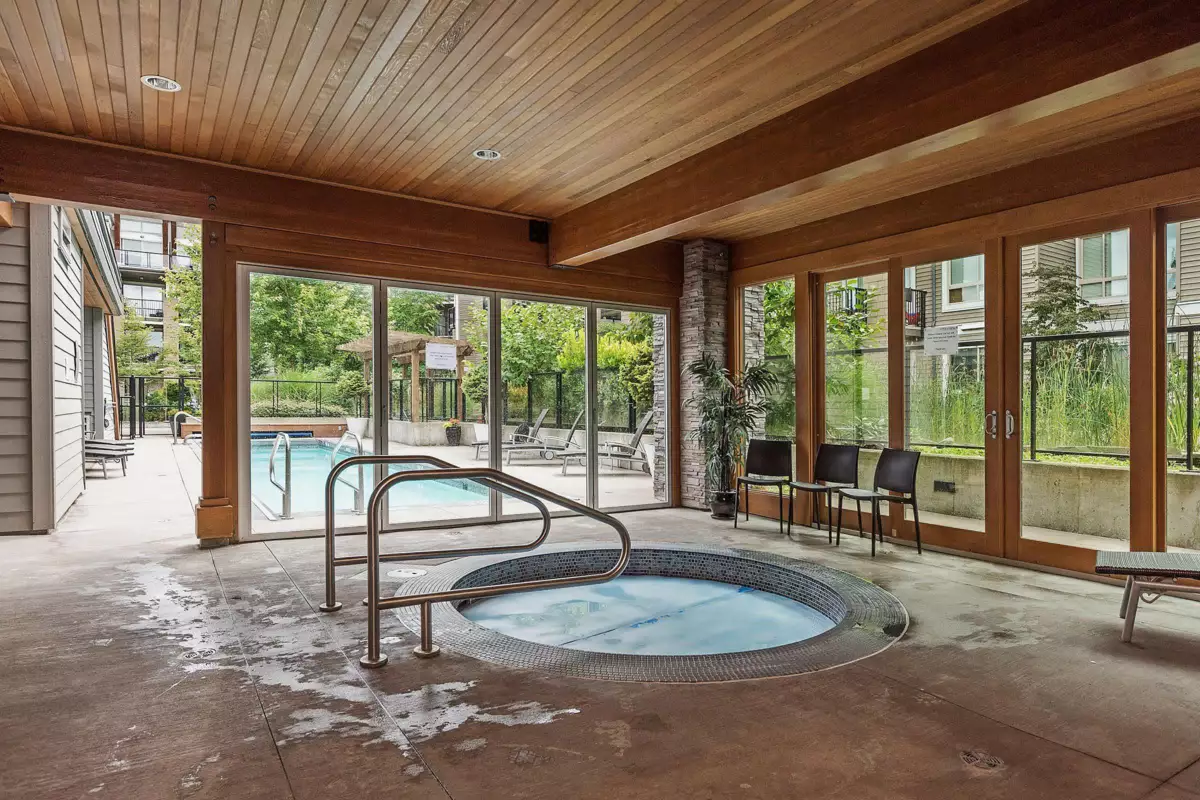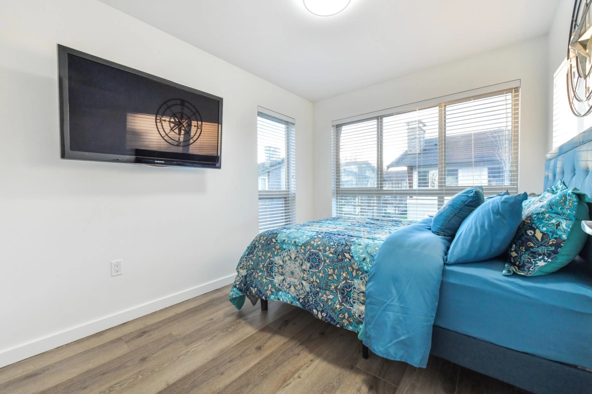 Award-winning SALUS by ADERA corner unit. Bright and spacious 4-bed, 3-bath townhome with open-concept layout, stainless steel appliances, gas fireplace, and oversized windows. New laminate flooring (2024), interior & exterior paint (2024), new washer/dryer, and new Bosch dishwasher. Flexible lower-level bedroom ideal for office or guests. Primary bedroom features vaulted ceilings. Resort-style clubhouse with outdoor pool, hot tub, spa, sauna, steam room, fitness centre, and 3,500 sq. ft. rooftop deck. Prime location steps to parks, schools, shopping, transit, trails, highways, and U.S. border. School catchments: Beaver Creek Elementary & Tamanawis Secondary.