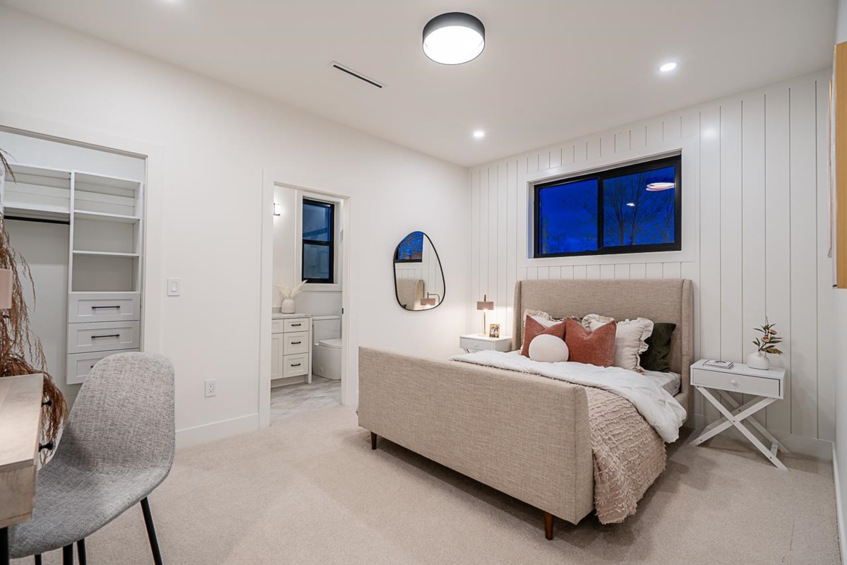 Stunning 7-bedroom, 6-bath new-build home in a quiet Tsawwassen cul-de-sac offering 3,912 sq.ft. of luxury living. Main floor features 10’ ceilings, open-concept great room with fireplace, chef’s kitchen with oversized island and walk-in pantry, full laundry, and a convenient bedroom. Upstairs offers a spa-inspired primary suite with vaulted ceilings plus another vaulted bedroom with private ensuite, along with a third ensuite bedroom. Lower level includes a legal 2-bedroom suite plus an extra bedroom, full bath, and bar for upstairs use. Close to Southpointe Academy, top schools, Tsawwassen Mills, BC Ferries, Highway 17, Beach Grove Golf Club, and Centennial Beach, all while only being 30 minutes to downtown Vancouver.