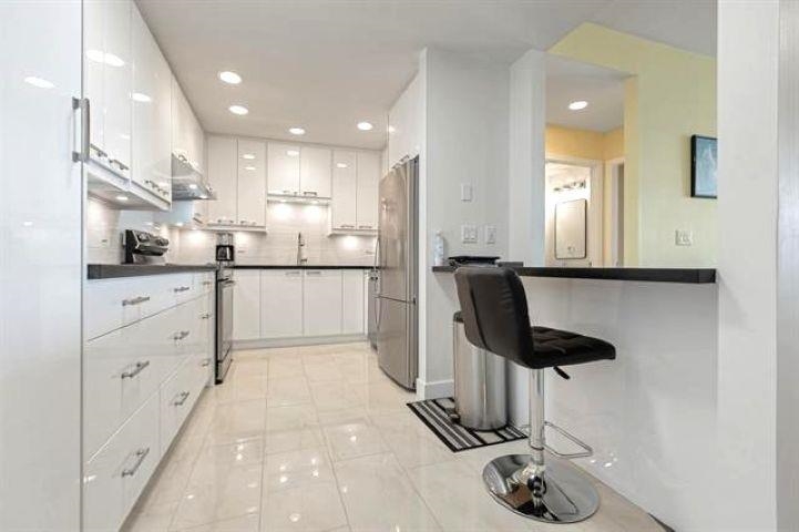 Beautifully Updated 2-Bedroom, 2-Bathroom Home in Westwater Views! This spacious main-floor residence has been tastefully renovated and is move-in ready. The stunning new kitchen features sleek white flat-panel cabinetry, under-cabinet lighting, quartz countertops, a breakfast bar, and stainless steel appliances—all complemented by new tile flooring. The open-concept living and dining area is perfect for entertaining, highlighted by a cozy gas fireplace and large picture windows with serene views of the park. The primary bedroom offers dual walk-through closets leading to a luxurious ensuite, complete with an updated vanity, glass rain shower, and soaker tub. Huge covered walk-out patio, and two secure underground parking stalls. Ideally located in a highly desired Steveston location!