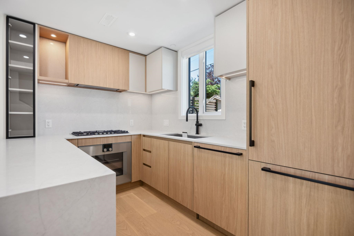 Be W 49th by Modella Developments is a collection of 17 newly built move-in ready 2 and 3-bedroom homes located in Vancouver's prestigious West Side. Tucked into a community of single-family residences, Be W 49th offers the security of neighbourhood living with the accessibility of city amenities and rapid transit, just beyond your doorstep! This inside 3-level townhome features 3 beds and 2.5 baths with engineered oak floors throughout. Culinary kitchens include full size Gaggenau appliances and plenty of open and closed kitchen storage. Entertain on large front and back garden patios and step out onto private balcony from primary bedroom. Includes 1 EV ready parking and storage locker. Open House Sat Jan 24, 2-4PM.