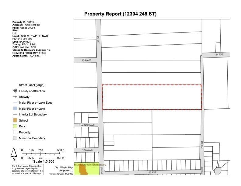 10 acres of RS1/RS3 mixed ALR use land parcel at the fast development neighbour of Maple Ridge. Property has city water connection. Gas/Electricity connection available upon requested. EASY TO CONNECT TO CITY SWERE