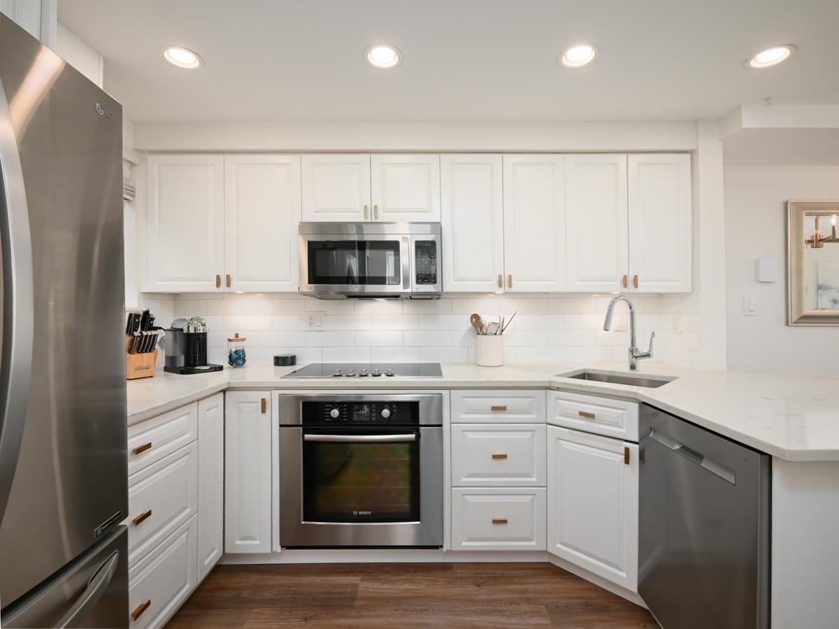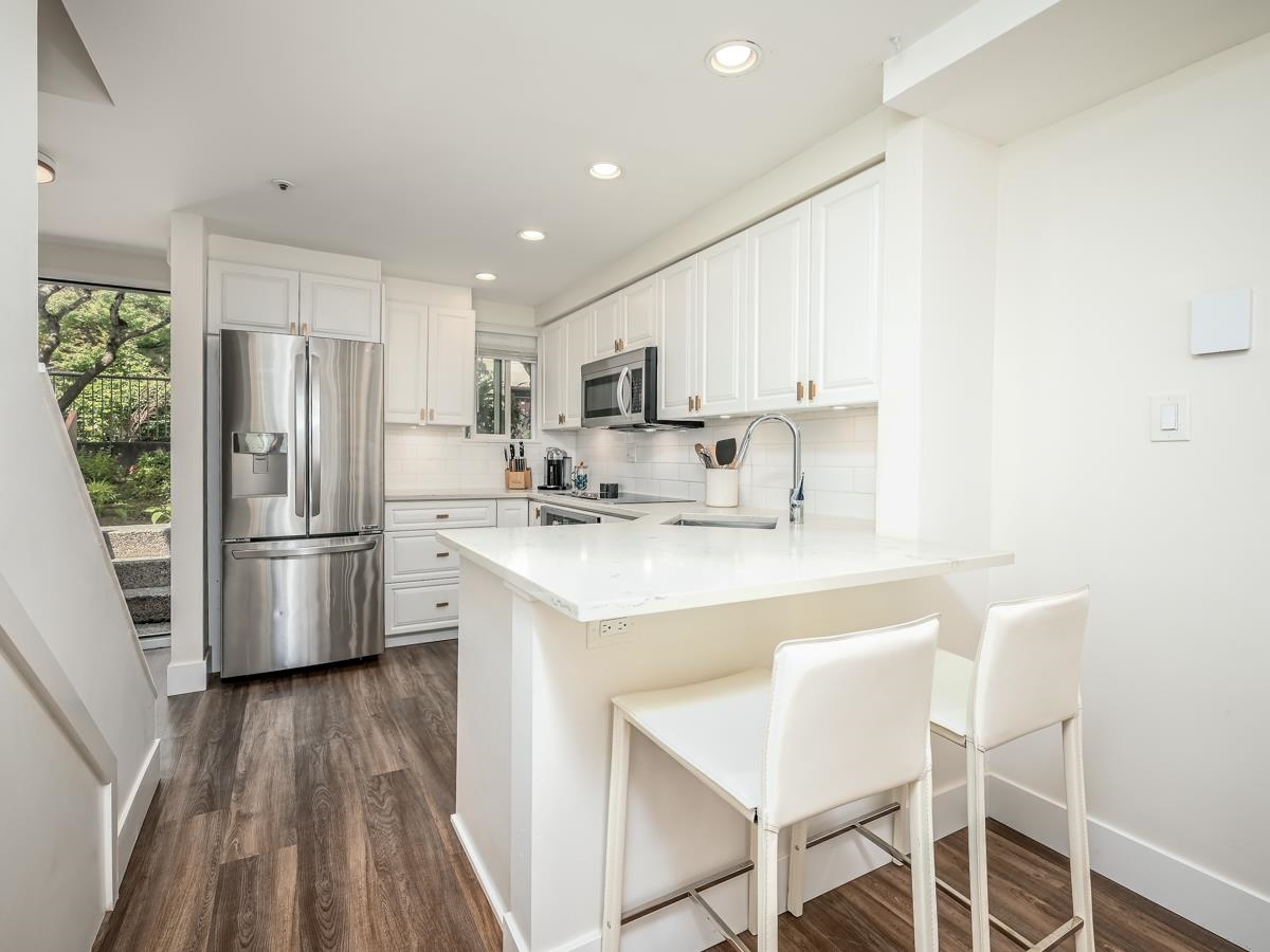 Beautiful move in ready 2 bdrm, 1.5 bath 2 level ground-floor corner unit with a SW outdoor patio and no unit above this one. Impeccably maintained with many updates. Bright modern open kitchen features newer stainless steel appliances and cabinets that open onto the living & dining room area featuring custom built in cabinets, new flooring and additional storage under the stairs. Upstairs BDRMS are separate by the bathroom and insuite laundry, Primary Bdrm features custom closet organizers. There are 3 separate entrances; ideal cross breeze circulation. Just a short stroll from the beach, shops, and Hollyburn Elementary School, this home offers a prime location. Well managed pro active strata, with secured underground parking, storage locker and secured bike area. Book your showing.