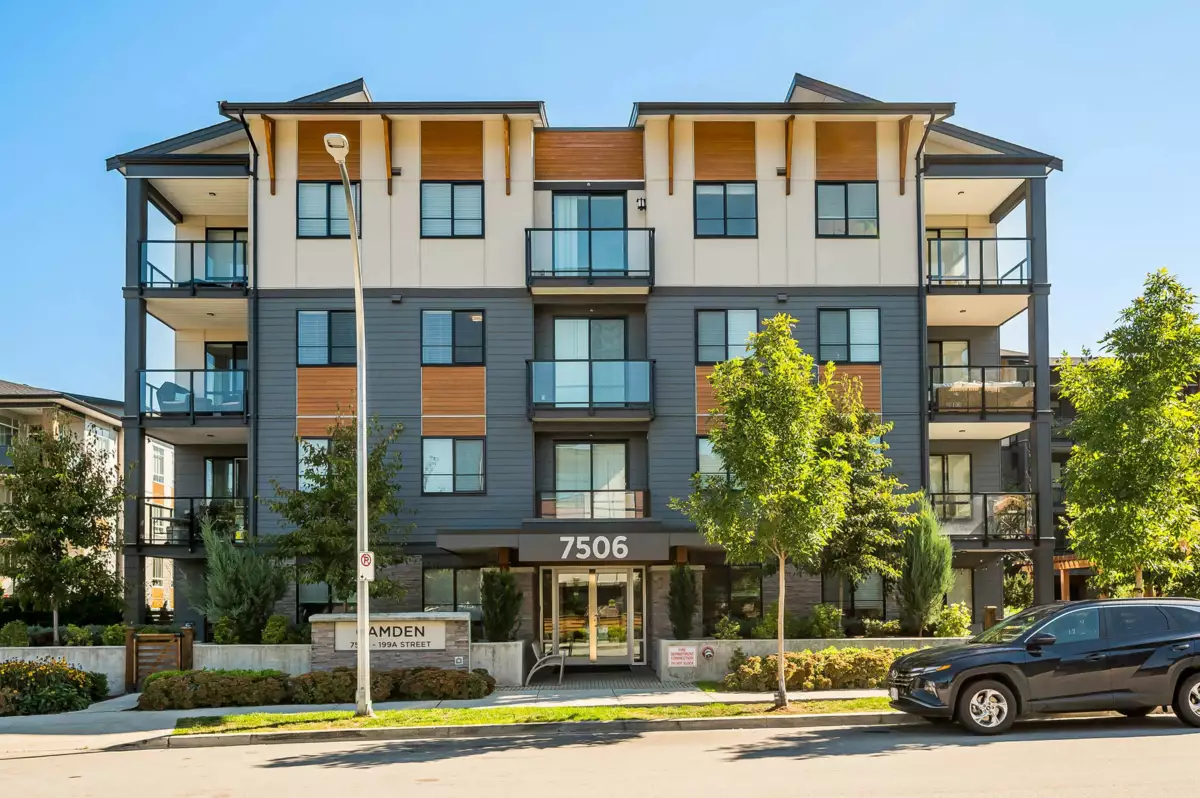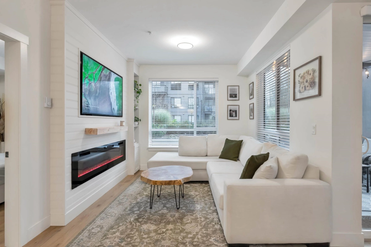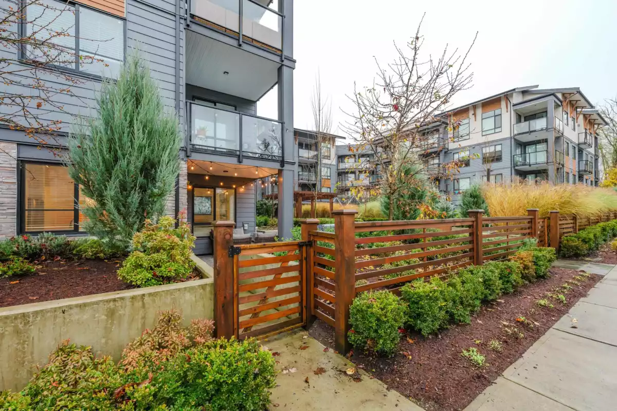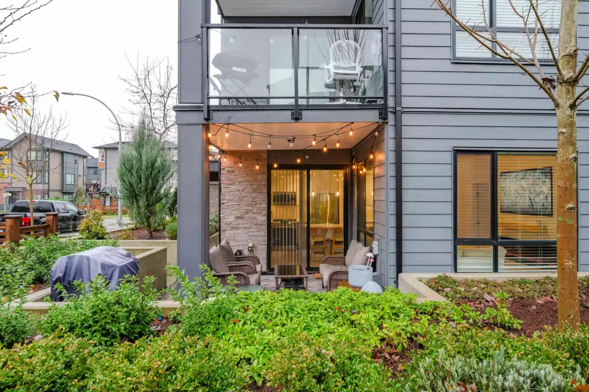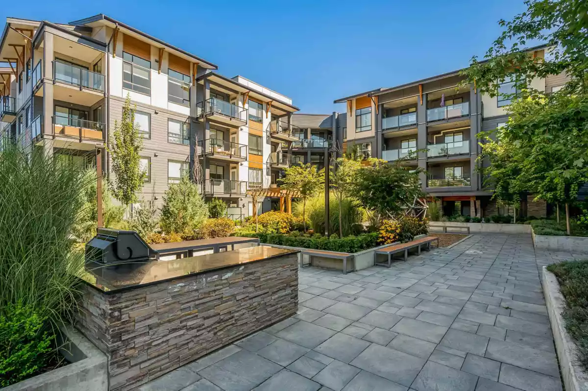 Bright, open, southwest-facing 2-bed, 2-bath corner home with a highly sought-after ground-level walkout patio, built by award-winning Zenterra. Excellent floor plan with 9 ft ceilings and vinyl plank flooring throughout. The kitchen features shaker-style cabinetry with a pantry, Samsung stainless-steel appliances with a gas range, a large island, quartz countertops, and an undermount sink. Two spacious bedrooms plus a bonus linen/storage area. Gas hookup on the patio. Unbeatable location: walk to coffee shops, restaurants, fitness facilities, and the Langley Events Centre. Future rapid transit will connect this area directly to SkyTrain. One underground parking, with more available to rent/purchase, plus plenty of street parking right out front.